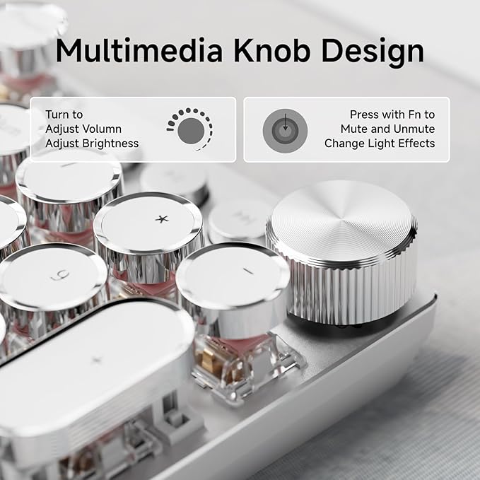 - 【Retro Typewriter Mechanical Keyboard】:The typewriter gaming keyboard has mechanical custom pink switches that feature a smooth linear feeling, and low resistance without a tactile bump feel. round keycaps of the punk mechanical keyboard look like a classical typewriter.keycaps have a matte texture and upgraded touch feel and the sound is quiet when the button is pressed lightly giving you a comfortable typing feeling and a stable click touch.