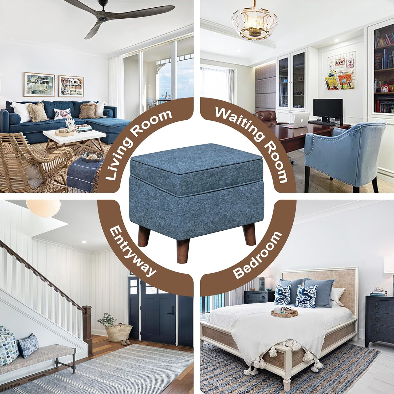 Foot Rest with Adjustable Cover, Storage Ottoman Dorm, Footstool and Sitting Stool, Ottoman Foot Stools for Living Room, Bedroom, Dorm, Blue
