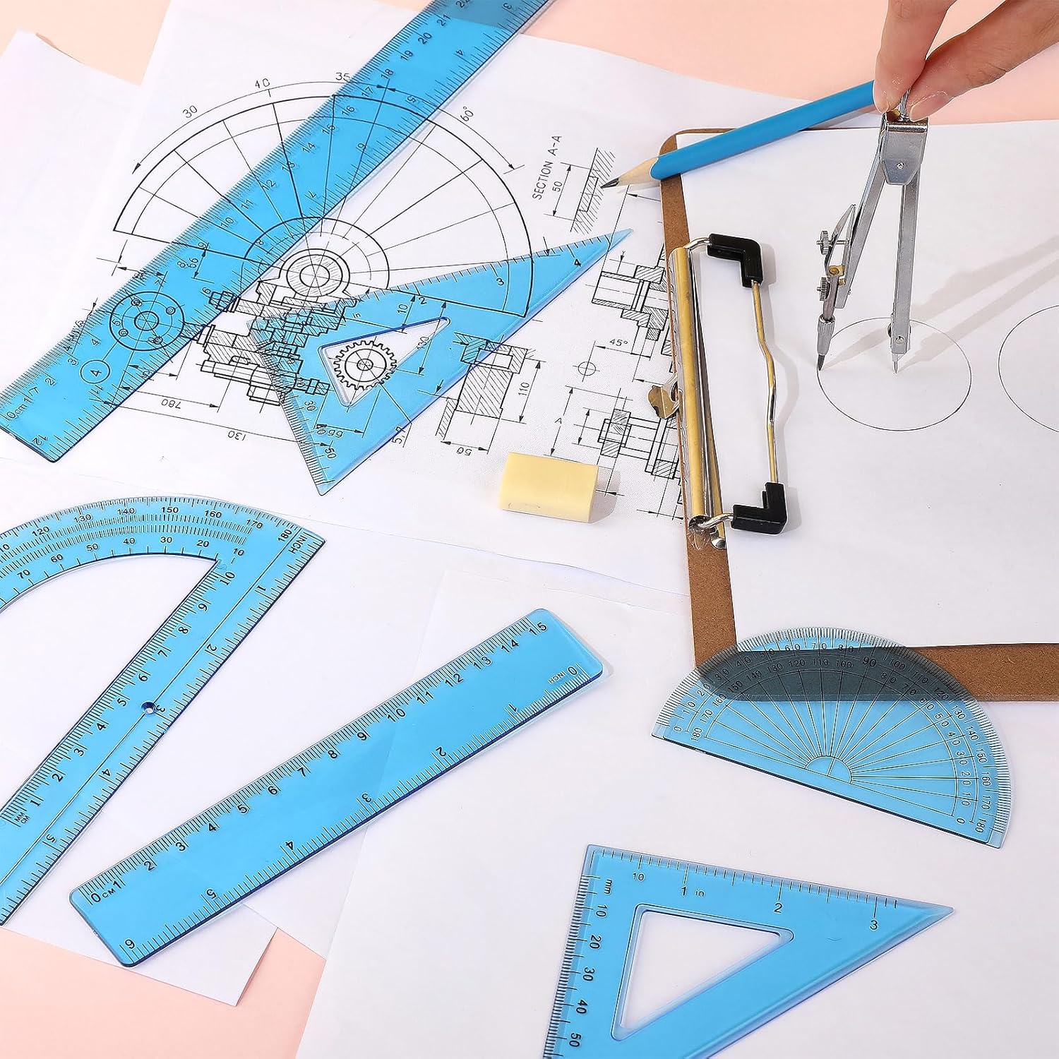 - Versatile and Essential Tools: this compass and protractor are practical tools for drawing circles and measuring angles, respectively, making them a must have for students, teachers, engineers, designers, artists, among others; This blue plastic ruler set proves to be an indispensable addition to your ruler bulk collection