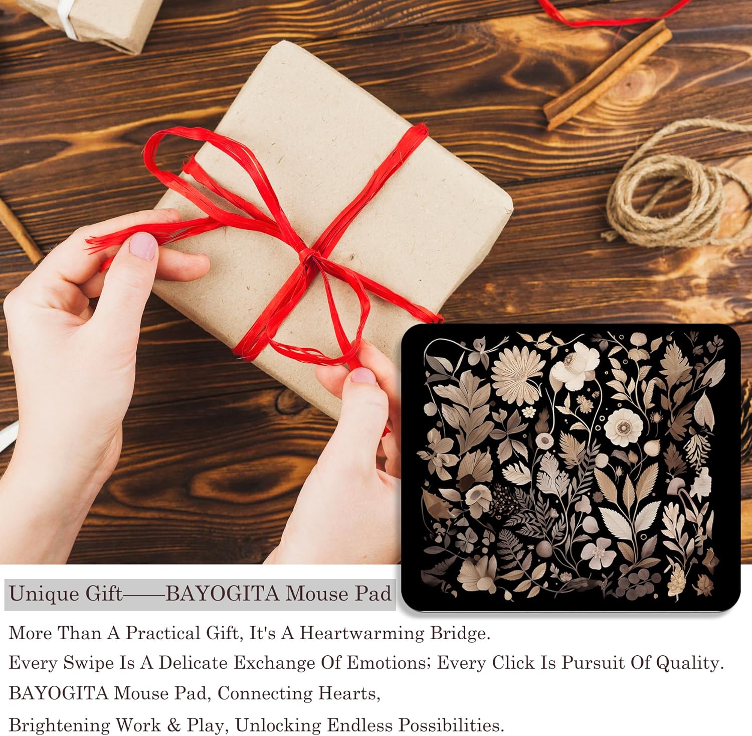 Floral Black Mouse Pad - Vintage Floral Decor Mousepad, Black Boho Flower Office Desk Mouse Pad, Boho Coworker Gifts, Gifts for Flower Lovers, 9.5x8 Inches