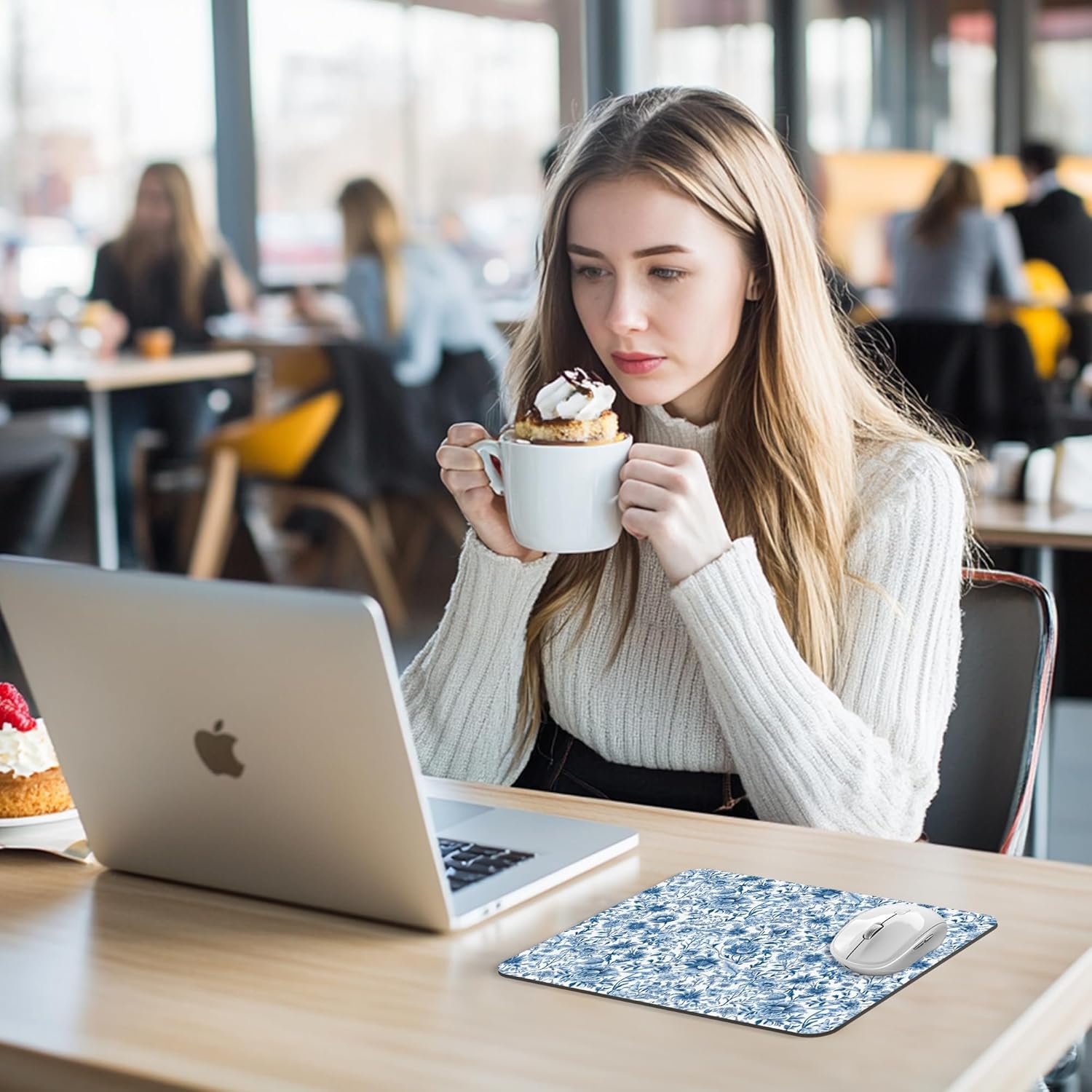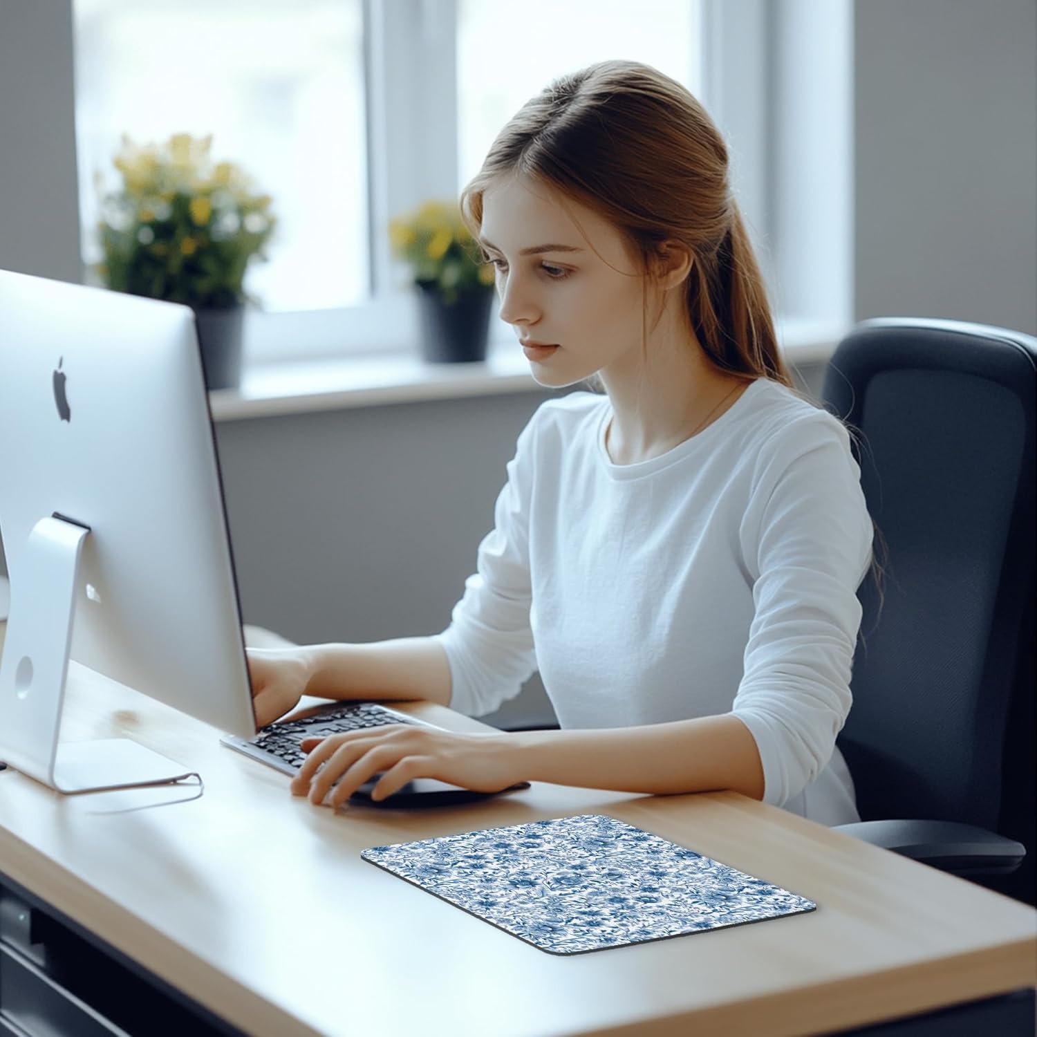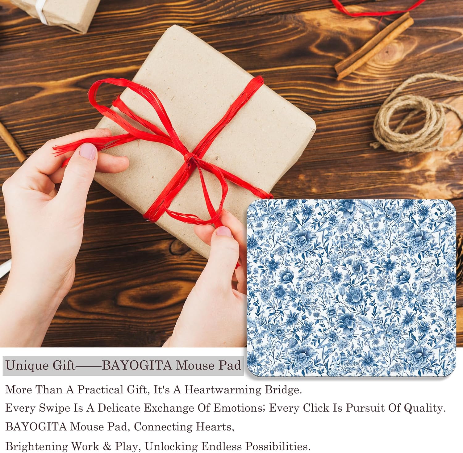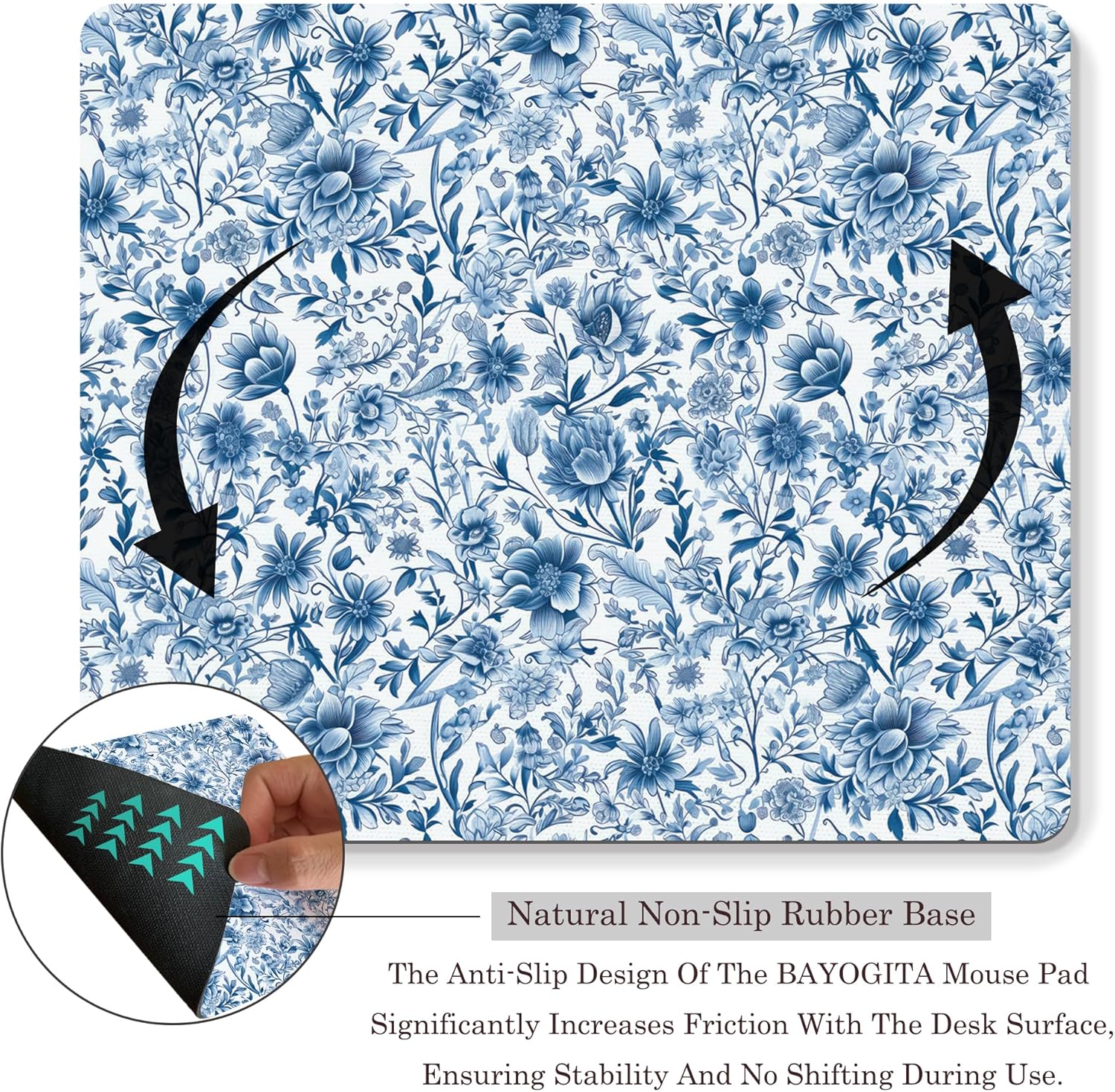 Chinoiserie Floral Mouse Pad - Blue and White Porcelain Floral Mousepad, Blue Chinoiserie Office Mouse Pads, Chinoiserie Decor, Coworker Gifts, Gifts for Employees, 9.5x8 Inches