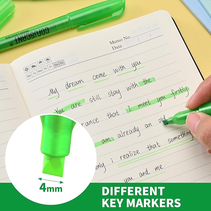 - RELIABLE and SAFE :Highlighter quality meets AMCI standardsοΌnon-toxic.The set contains 40 green highlighters bulk