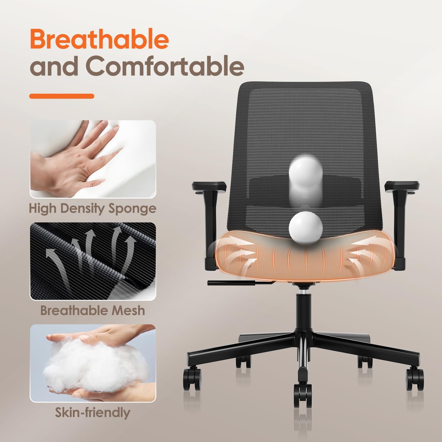 - β γBreathable Elastic Meshγ- MOLENTS ergonomic office chair comes with breathable mesh fabric and a thick and wide cushion to keep you cool and comfortable. Our ergonomic chair is ideal for home or executive offices.