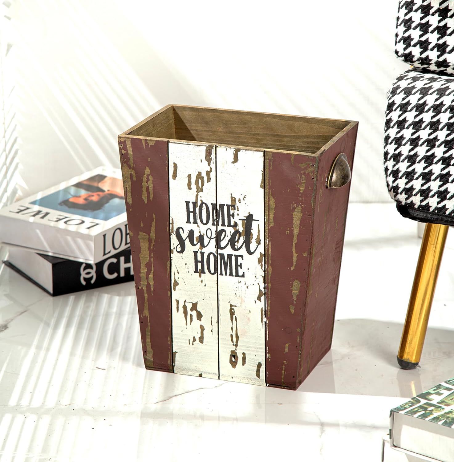 - UNIQUE DESIGN β Each wastebasket is delicately handmade, which is rust red and white distressed finish with double-sided letters of [Home Sweet Home], great for adding endless warmth and rustic flair to your space.