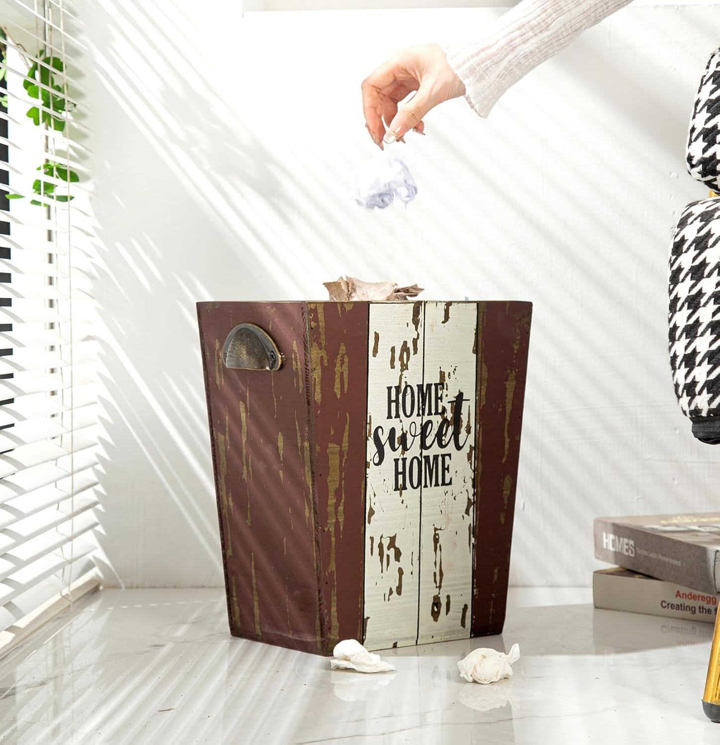 - CHARMING RUSTIC TOUCH β Features a rustic distressed wood finish, our waste can creates a vintage farmhouse charm, it is a unique and beautiful scenery wherever you place it, you will certain to get plenty of compliments.