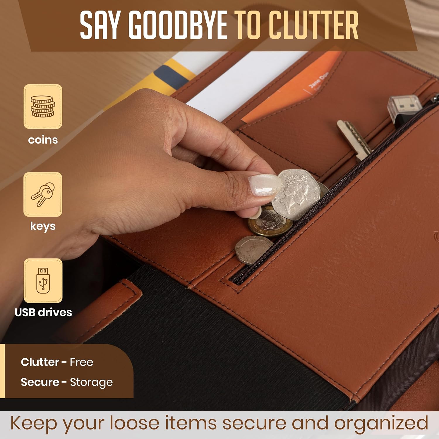 - ✅ STYLE MEETS FUNCTION: Elegant design featuring 10.1 inch tablet sleeve, phone pouch, manila folder ideal for data, documents, resumes, convenient double zip