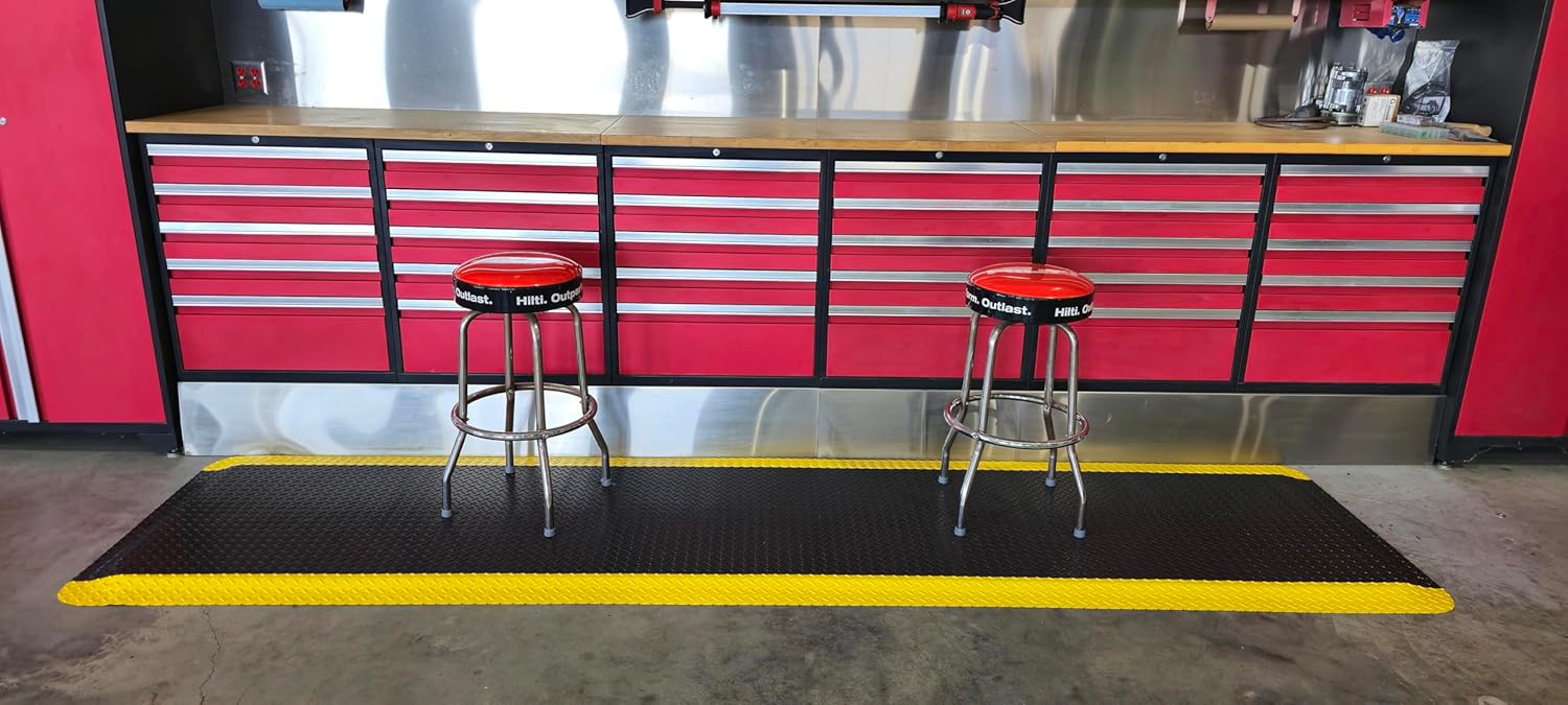 Rhino Mats, American Classic Diamond Anti-Fatigue Mats, Industrial Ergonomic Comfort Standing Mat for Work, Home, Garage, Office, Kitchen or Anywhere (Black/Yellow 1" Thick, 4 FT. x 11 FT.)