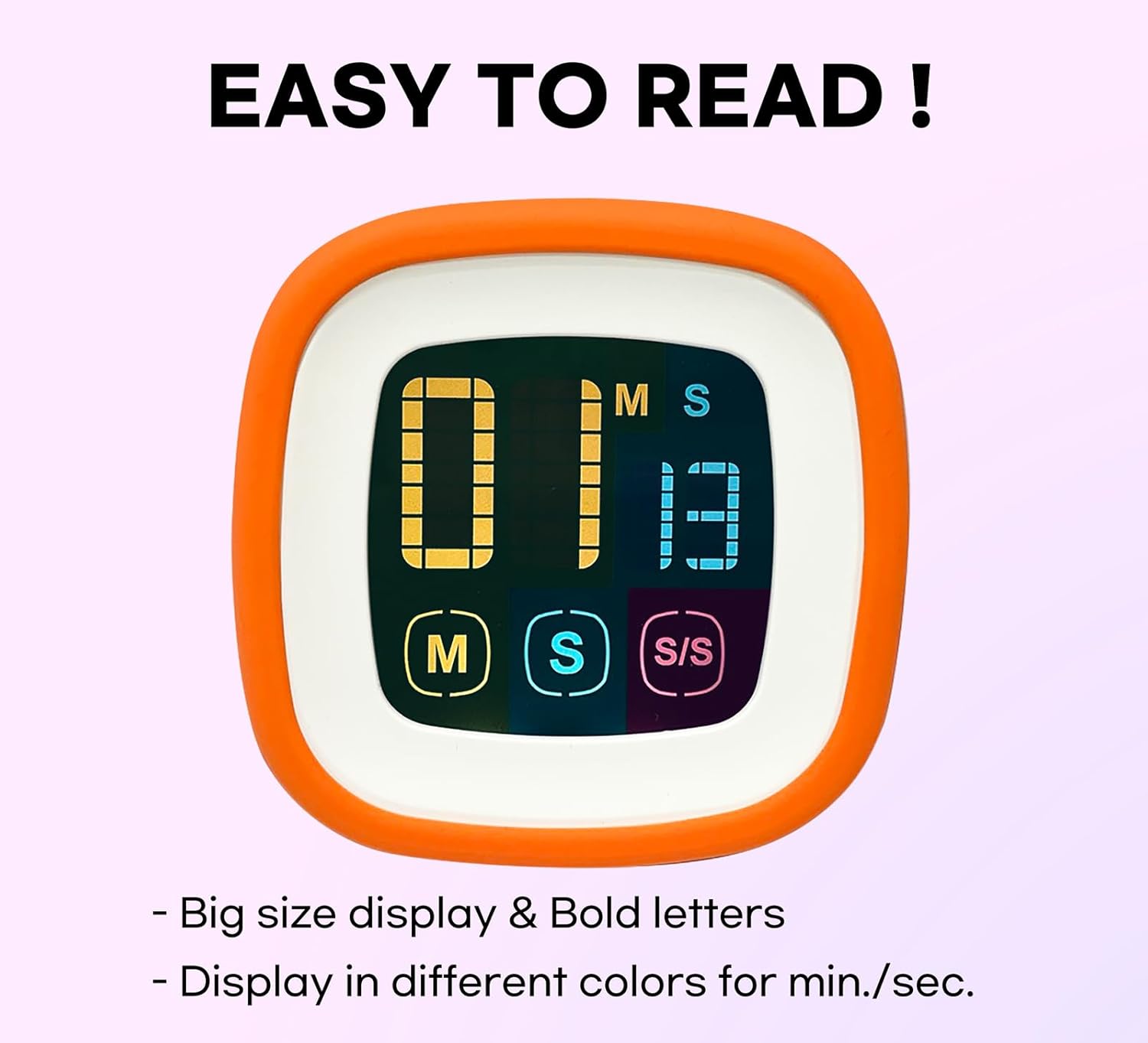 - 【 Easy to read 】 This digital timer features 2.35 inch Large Screen, bold colored digits for Minutes & Seconds and a Bright backlit display. It makes easy to capture the time clearly even from a distance. Especially recommended for kids & seniors.