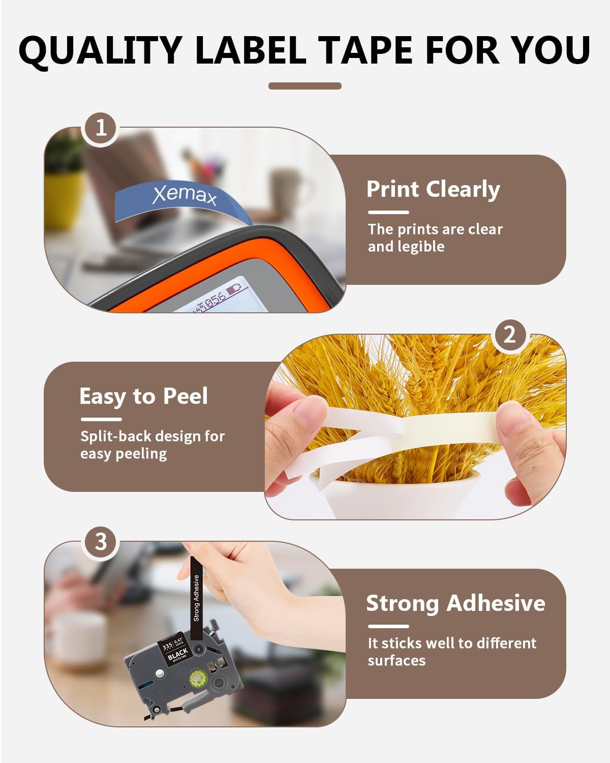 - Compatible for Brother PTouch Tape 12mm Label Makers: PT-D220, PT-D410, PTD460BT, PT-2040W, PT-2040SC, PT-2040C, PT-D200, PT-D201, PT-D202, PT-D210, PT-D215e, PT-E100, PT-E105, PT-E110, PT-H100, PT-H105, PT-H110, PT-H111, PT-H200, PT-P300BT, PT-D400, PT-D450, PT-E300, PT-H300, PT-D600, PT-E500, PT-E550W, PT-H500, PT-P700, PT-P710BT, PT-P715eBT, PT-P750W, PT-D800W, PT-E800W, PT-P900, PT-P900W, PT-P950NW, PT-P910BT