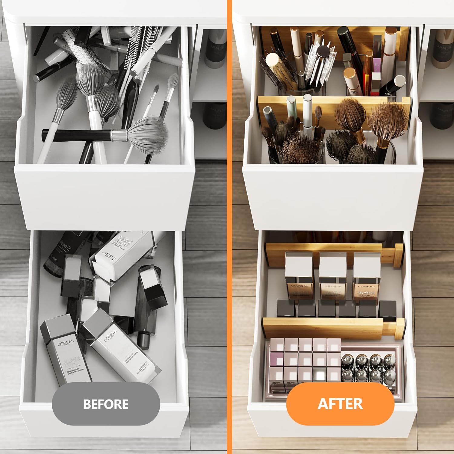 - Premium Bamboo Material: These bamboo drawer dividers are made of high quality bamboo material, natural color, tough texture, smooth surface, well made and long-lasting; Simply wipe it with a damp cloth