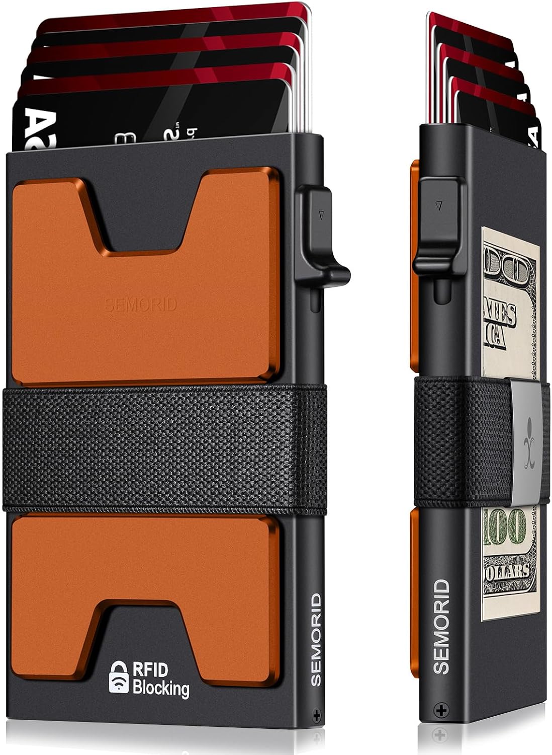 Slim Aluminum Card Holder Wallet for Men, Durable Expandable Backplate, RFID Blocking Minimalist Metal Pop Up Wallet, Holds 12+ Cards Plus Cash