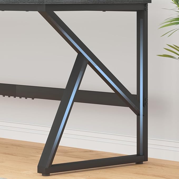 - 【Sturdy Construction】: Constructed with three high quality MDF panels and two thicken K-shaped metal legs, this industrial metal wood desk ensures the stability during use and can support up to 400lbs of weight. The adjustable 4 levelers can be used in uneven ground to keep the computer table balance and prevent scratches.