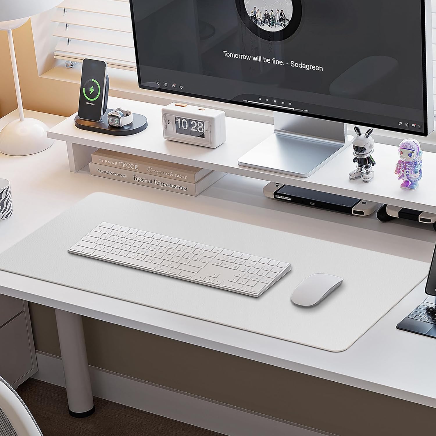 Boutilon Leather Desk Pad Protector,Non-Slip Mouse Pad,Laptop Desk Pad,Office Mouse Mat,Waterproof Leather Desk Blotter,Desk Writing Pad for Office and Home (S-White,24"x 14")