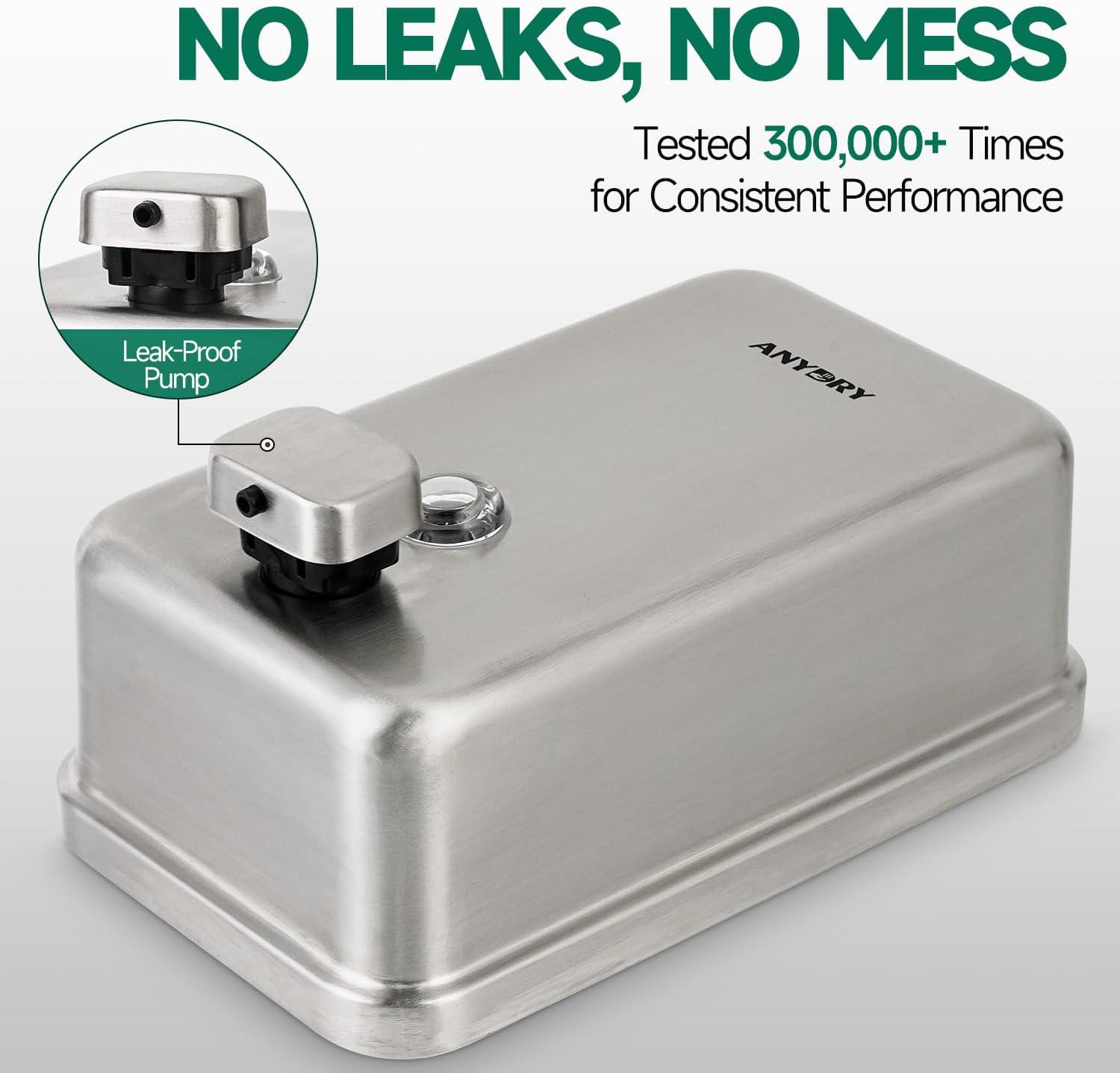 Commercial Wall Mounted Soap Dispenser 37oz 1100ml Large Capacity Brushed Stainless Steel Manual Dispenser for High Traffic Restrooms