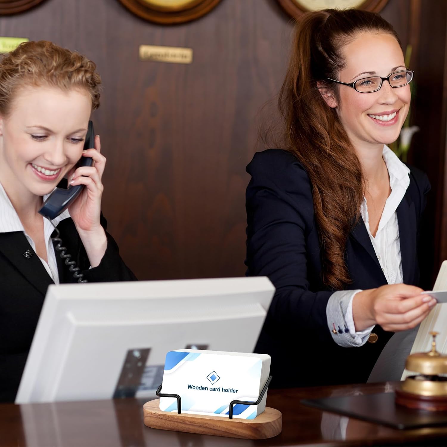 Amyhill 2 Pieces Wood Business Card Holder for Desk Wooden Business Card Display Stand Postcard Holder for Office Home Desktop(Wood Color)