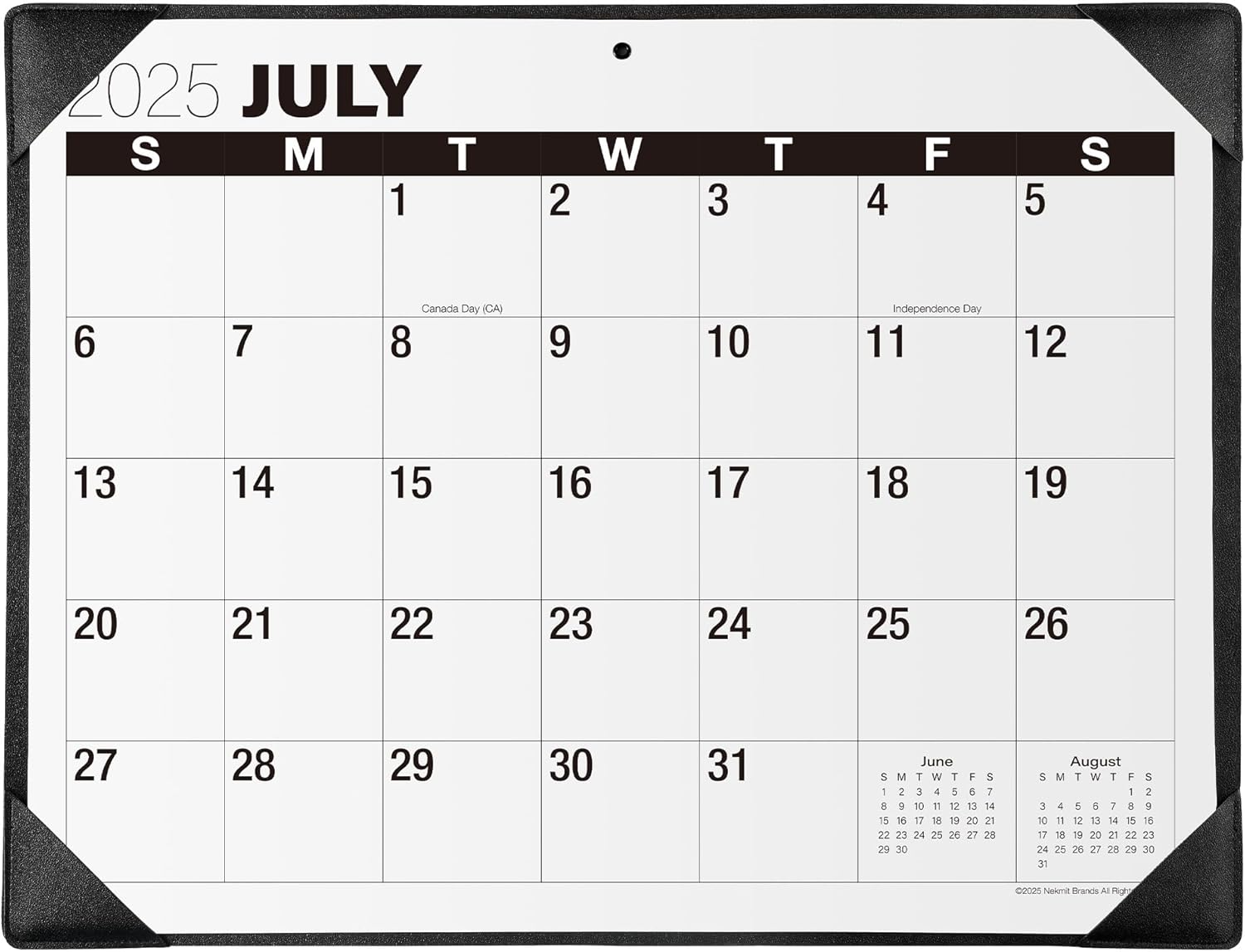 Nekmit Desk Calendar 2025-2026, Large Print Desk Calendar with Desktop Mat, 21" x 16 1/2", Runs From July 2025 to June 2026, for Home and Office, Black