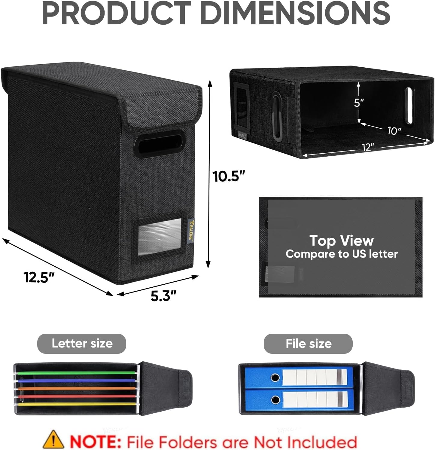 - [MULTI-PURPOSE USAGE] Measuring 5.3x12.5x10.5 inches, our file folder box is perfect for organizing files, bills, and papers in your home or office. Its versatility makes it practical for various needs