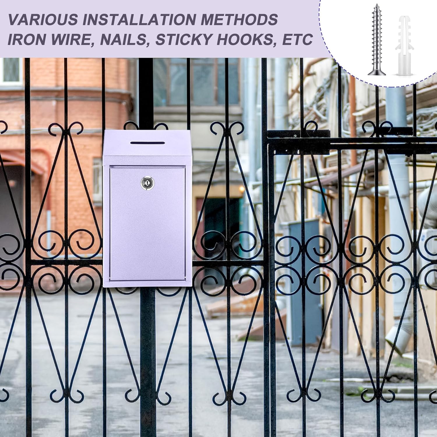 - Delicate Design: the top of our mailbox wall mounted outdoor is designed with a rainproof cover, which can effectively prevent rain from entering the mailbox; There is a small square mouth under the cover, which can facilitate your daily delivery of letters and other items; The keyhole design of the product is on the front, which can facilitate you to take out the items in the mailbox at any time