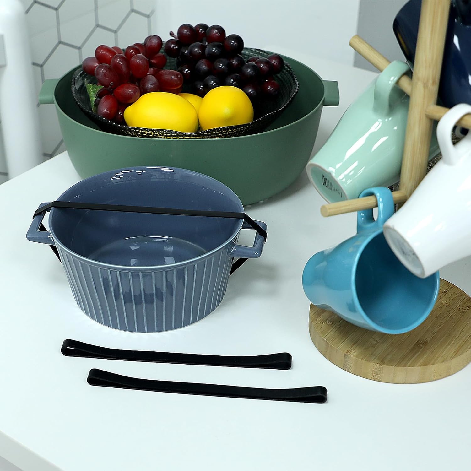 Simple, durable, and modern. The muted teal accessories are subtle but beautiful. -