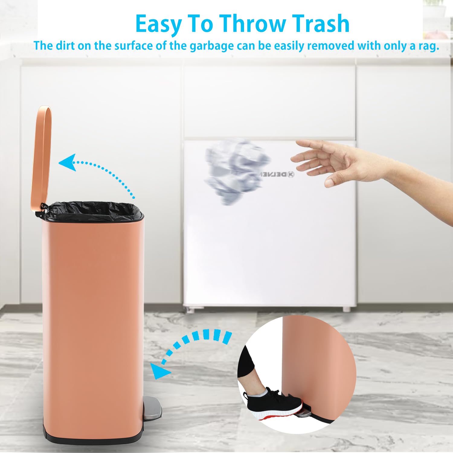 - 13 Gallon Ultra-large Capacity: 13 gallons can absolutely meet your daily use, in the kitchen table next to a kitchen trash can, you will be more convenient to deal with kitchen waste. The regular 13-gallon garbage bag in the supermarket can be used in our stainless steel trash can, and it's kind of you to use a bigger bag. The lid of the garbage can is removable, itβs convenient for you to put in and take out the garbage bag.step trash can kitchen trash can bedroom trash can