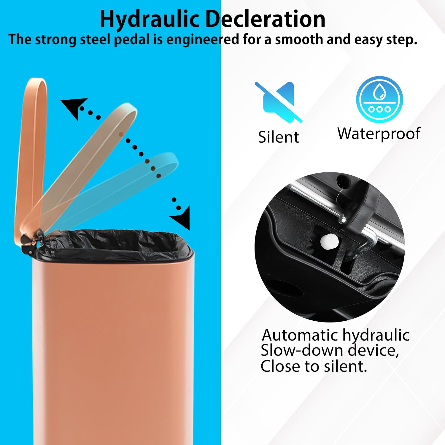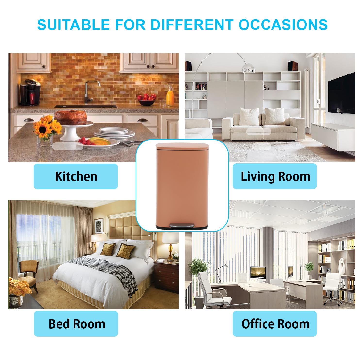 - Hand Free & Odor Control : Trash can with foot pedal allows you to dispose of trash without dirtying your hands or physically touching the trash can lid. The tight-fitting lid reduces odors, keeping your space fresh and the surrounding area smelling fresh and pleasant.