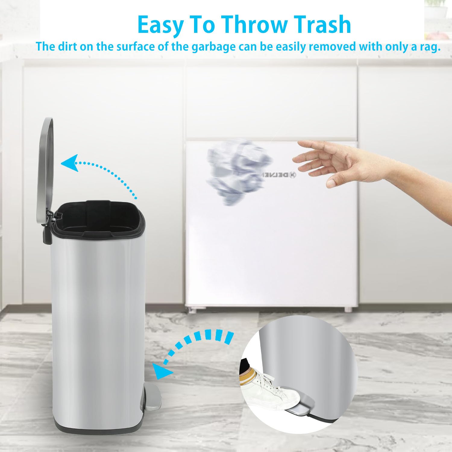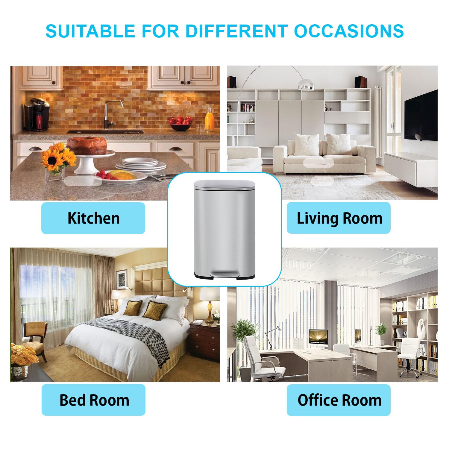 - 13 Gallon Ultra-large Capacity: 13 gallons can absolutely meet your daily use, in the kitchen table next to a kitchen trash can, you will be more convenient to deal with kitchen waste. The regular 13-gallon garbage bag in the supermarket can be used in our stainless steel trash can, and it's kind of you to use a bigger bag. The lid of the garbage can is removable, itβs convenient for you to put in and take out the garbage bag.step trash can kitchen trash can bedroom trash can