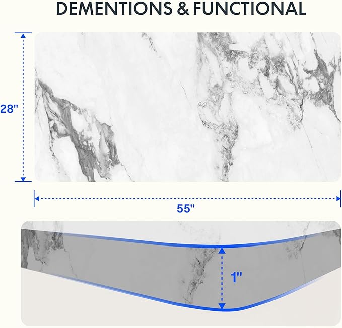 - AMPLE WHOLE-PIECE DESKTOP: With its whole-piece 1β eco-friendly desktop, this standing desk provides plenty of room for your computer setup, documents, and accessories, creating a well-organized and productive work environment. Due to hand measurements, desktop dimensions may vary slightly by 0 to 1β.