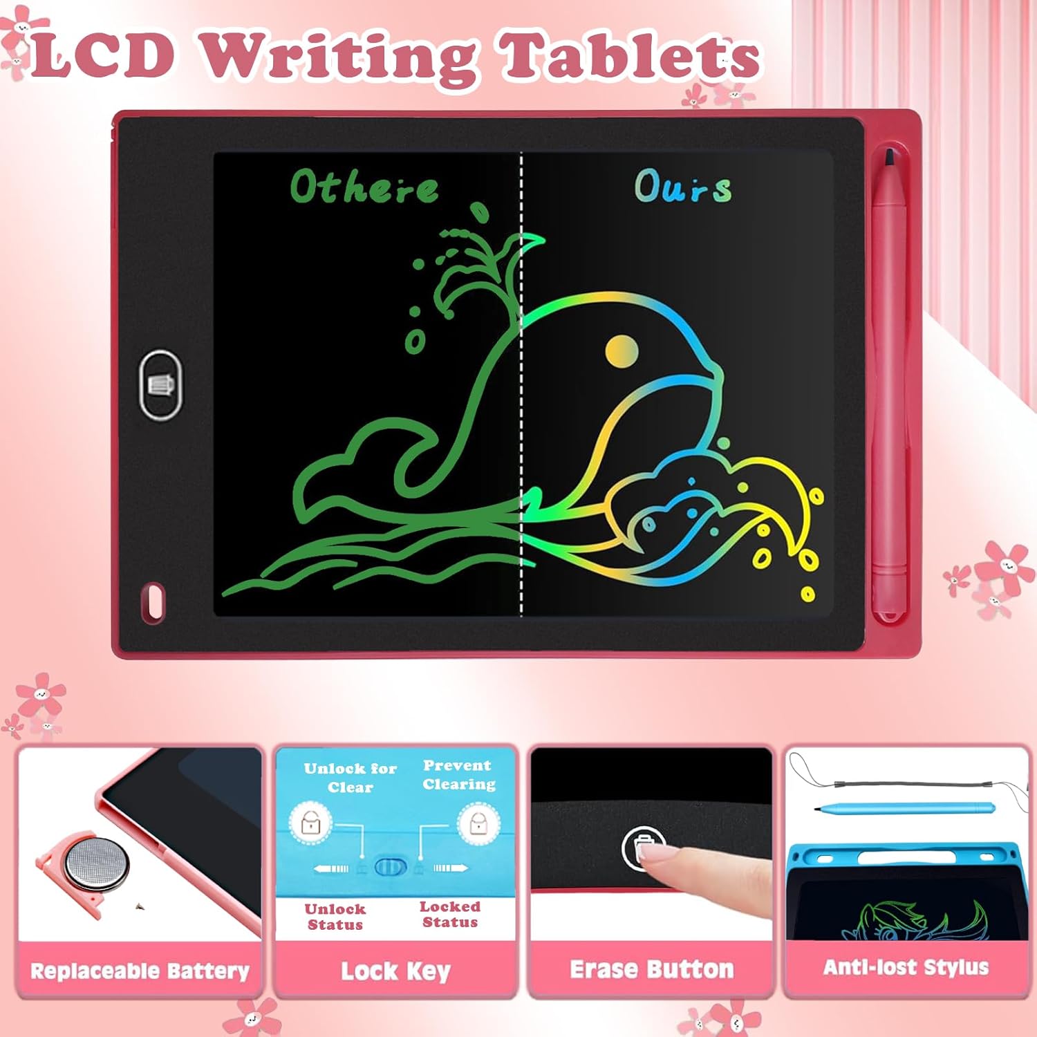 2 Pack LCD Writing Tablet for Kids 8.5 Inch Colorful Toddler Drawing Board Kids Travel Games Activity Learning Doodle Board Toys Gift for Age 3 4 5 6 7 8 Year Old Girls Boys (Blue+Pink)