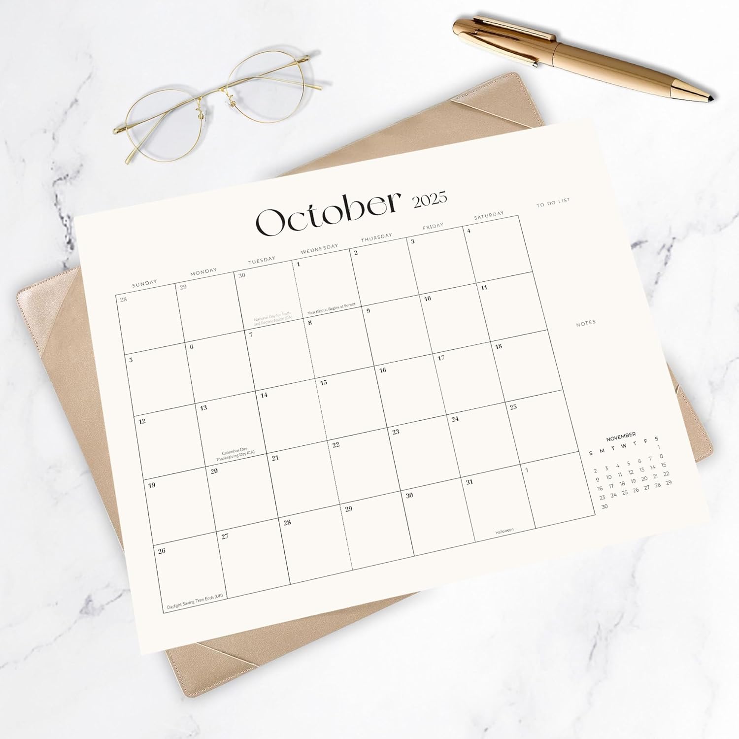 - Simplified desk calendar is designed to keep you on track with an 18-month runs from July 2025 to December 2026. Featuring holidays, to-do lists, and notes, each month has its own dedicated page for efficient planning and scheduling