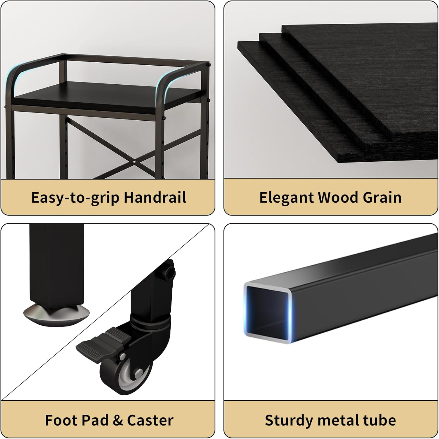 - Casters and Foot Pads Included: This under-desk printer stand features 4 ball-bearing swivel casters with brakes, allowing easy movement with loads or on carpets. For stationary use, secure it with the included foot pads. Whether you require frequent repositioning or a stable setup, this printer stand meets your needs.