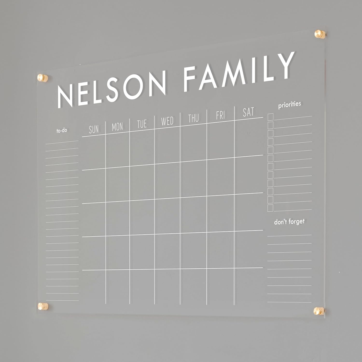 Personalized Clear Acrylic Calendar for Wall, Calendar Whiteboard for Wall, Dry Erase Wall Calendar, Wall Calendar Organizer System for Home (Block, White, 38"W x 26"H)