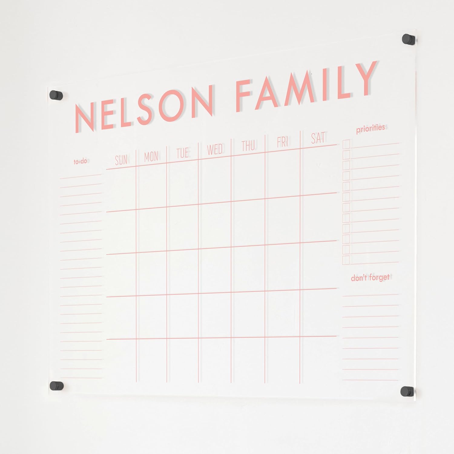 Personalized Clear Acrylic Calendar for Wall, Calendar Whiteboard for Wall, Dry Erase Wall Calendar, Wall Calendar Organizer System for Home (Block, Blush, 38"W x 26"H)