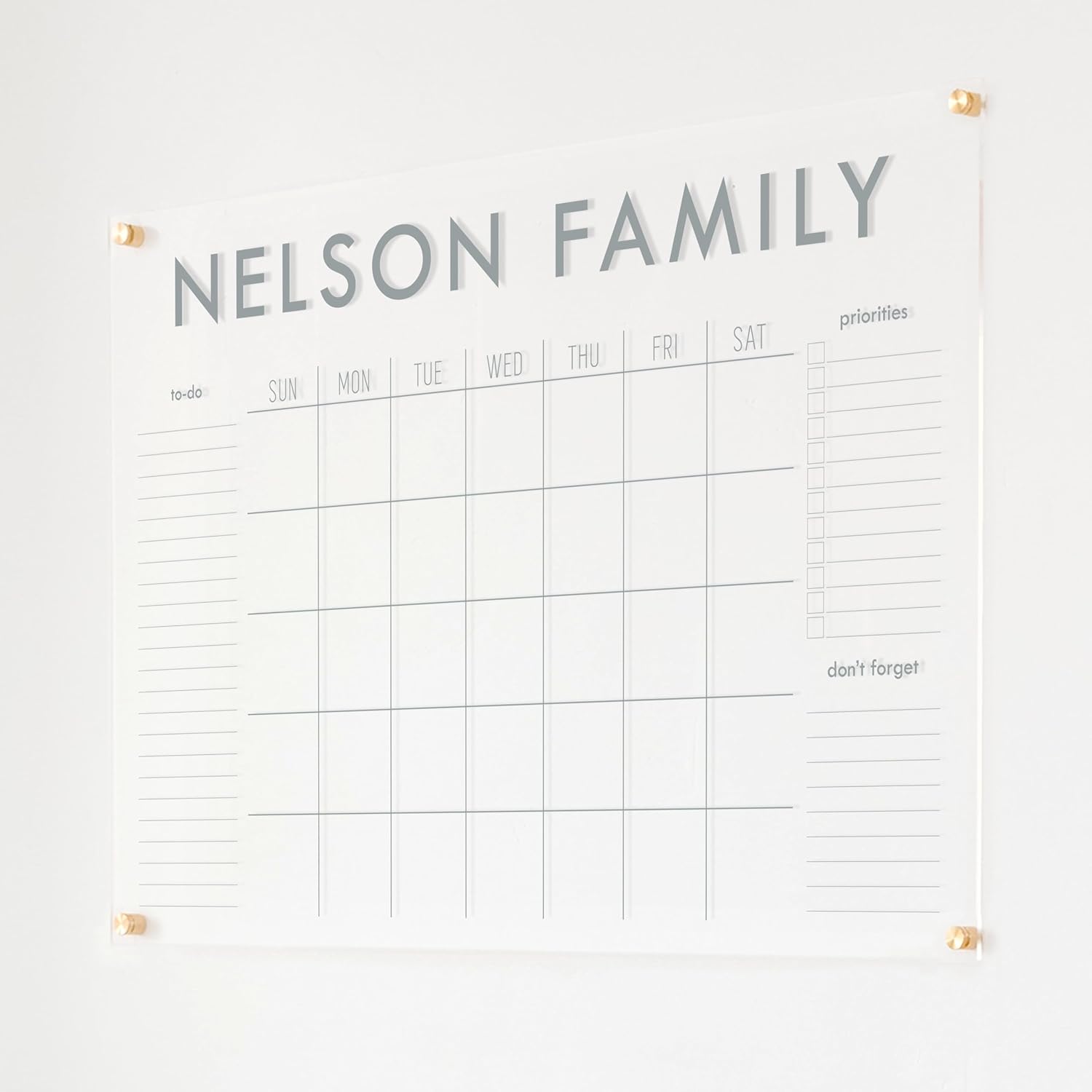 Personalized Clear Acrylic Calendar for Wall, Calendar Whiteboard for Wall, Dry Erase Wall Calendar, Wall Calendar Organizer System for Home (Block, Grey, 38"W x 26"H)