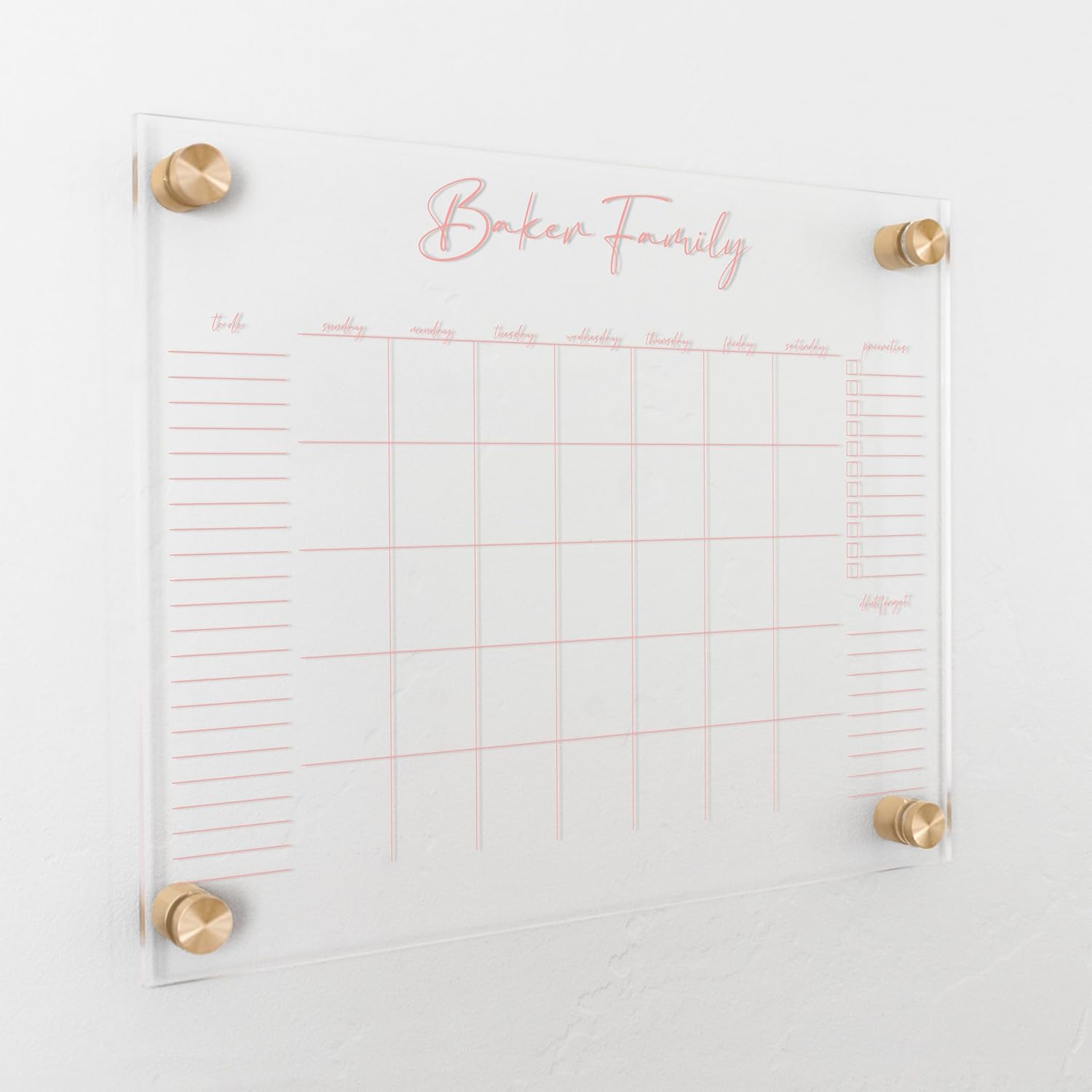 Personalized Clear Acrylic Calendar for Wall, Calendar Whiteboard for Wall, Dry Erase Wall Calendar, Wall Calendar Organizer System for Home (Cursive, Blush, 14"W x 11"H)