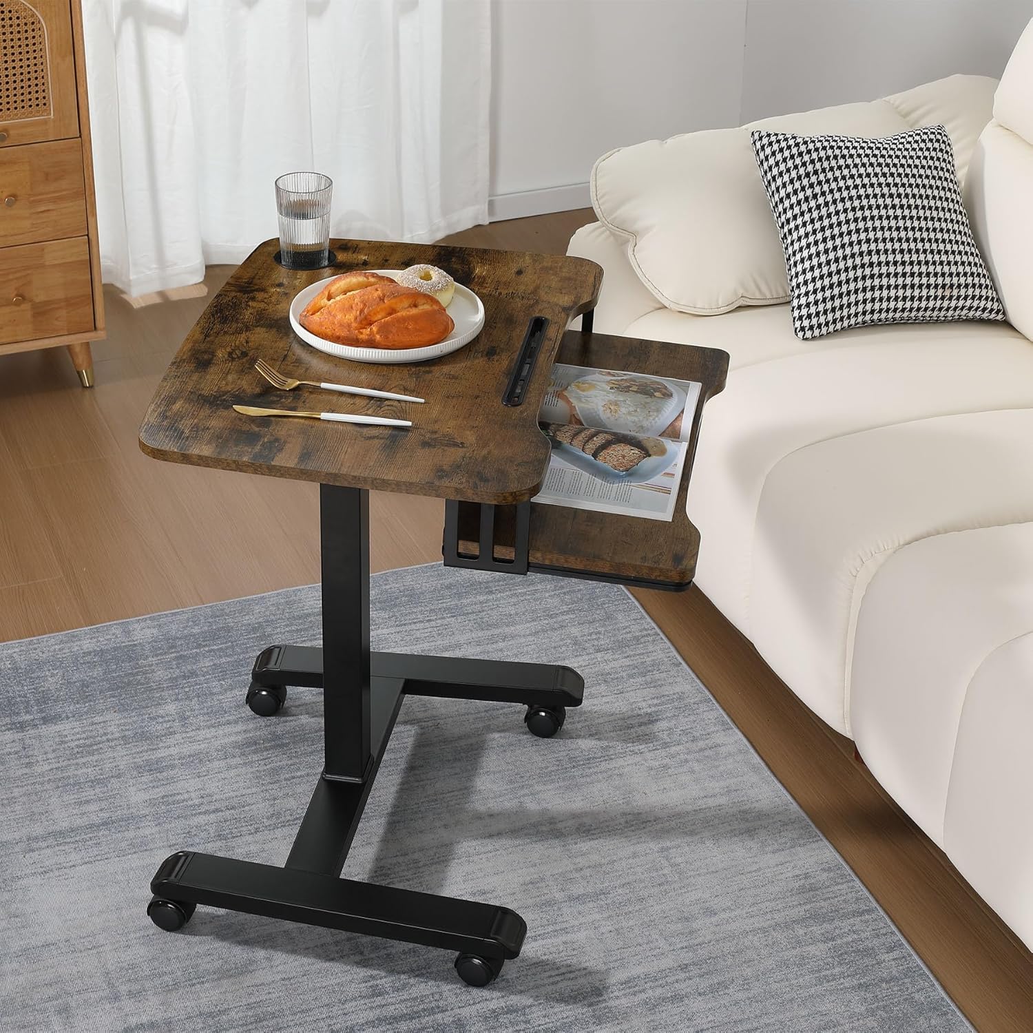 ETHU Mobile Standing Desk with Keyboard Tray,Computer Workstation, Height Adjustable Laptop cart on Wheels Rolling Desk for Home Office(Walnut)