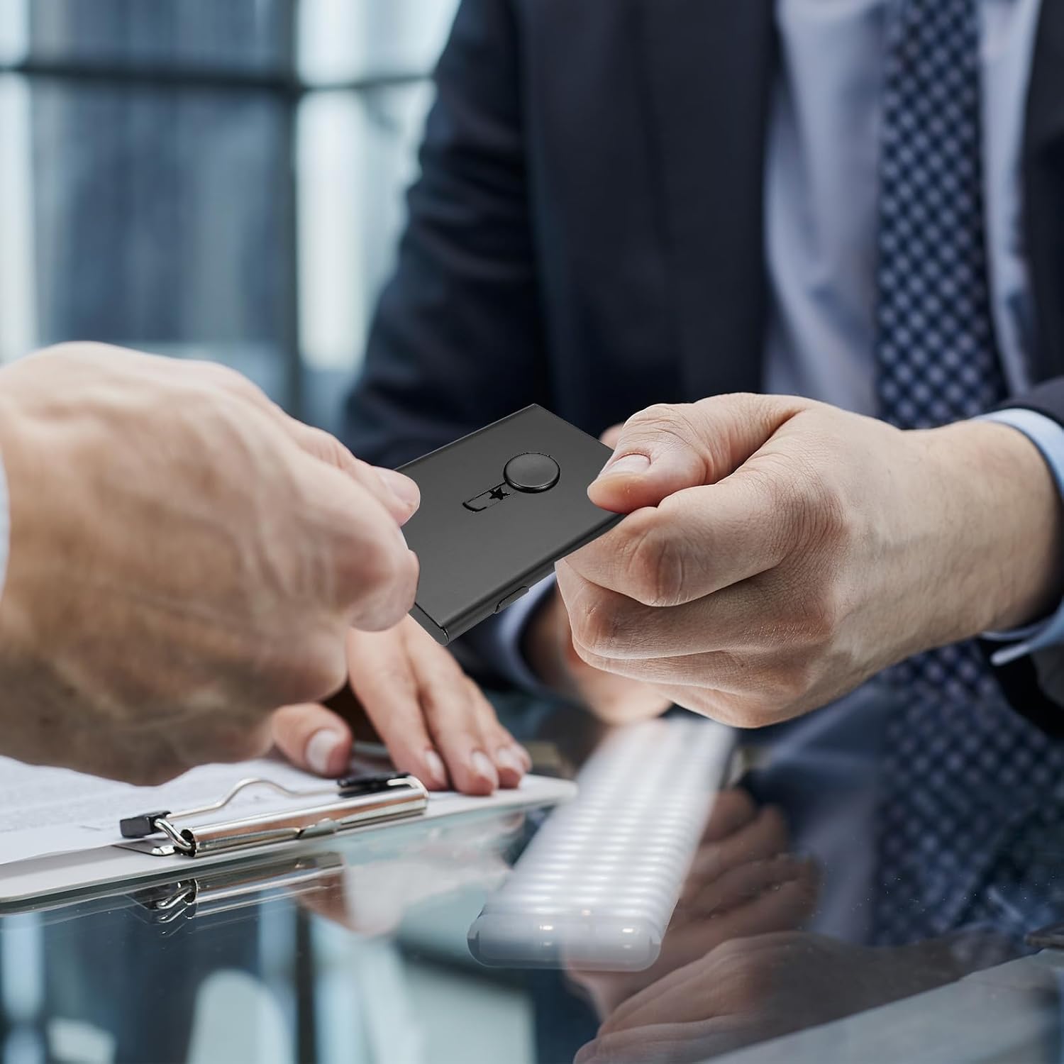 - Note: Holds 10-18 business cards depending on thickness; Easier to slide out when fewer cards are loaded at a time