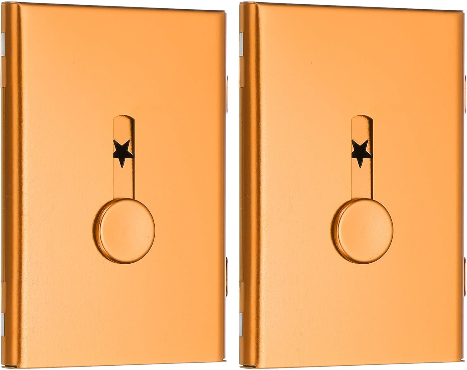 PATIKIL 2 Pcs Business Card Holder, Thumb Drive Business Card Holder Portable Business Card Holders Alloy Slide Out Card Case for Business Meeting, Gold