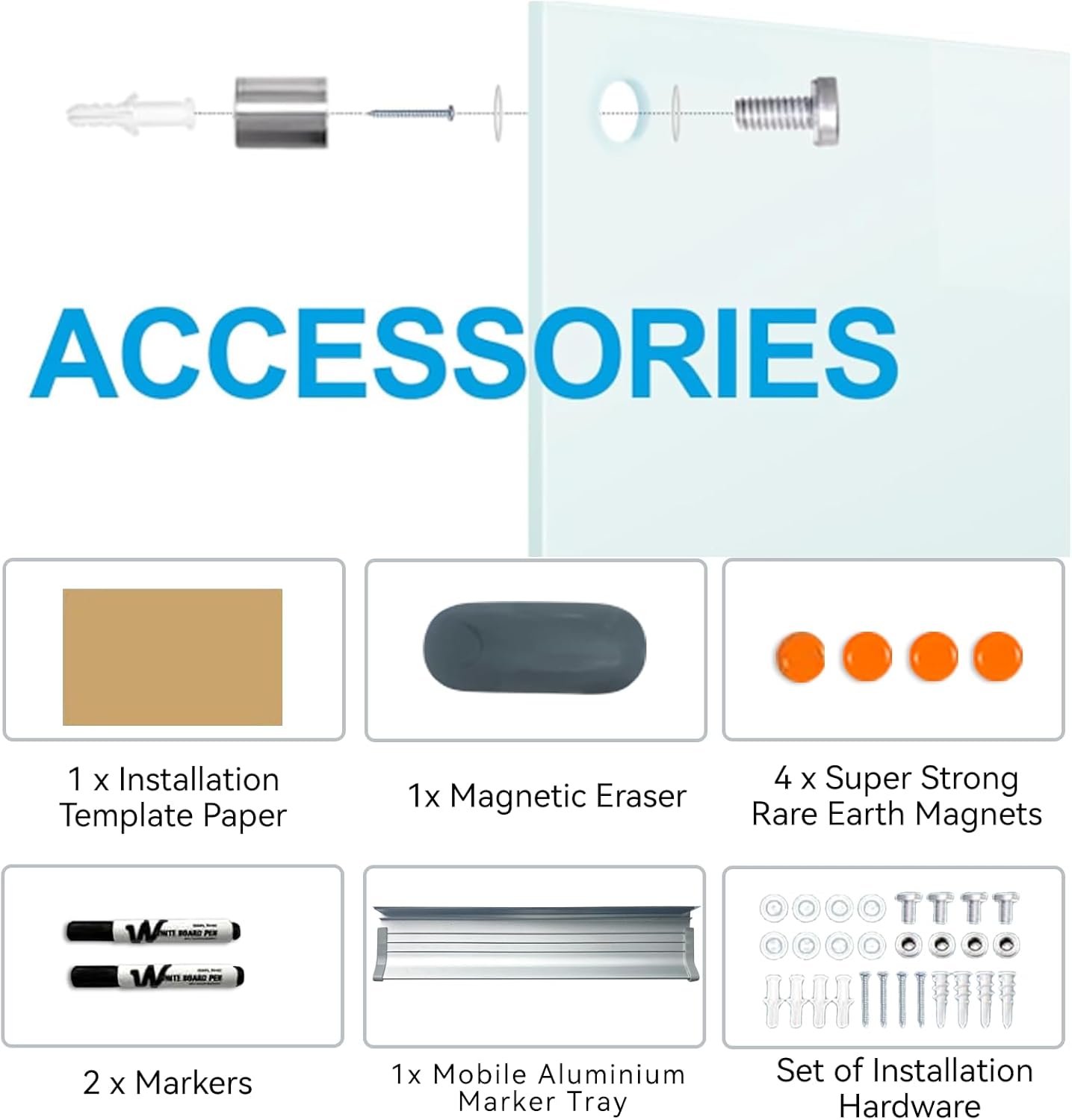 - Versatile Usage: You will receive a 48x36 inches/4' x 3' magnetic glass board, 2 markers, 4 super strong magnets, 1 magnetic board eraser and 1 movable tray. Great for project planning, classroom teaching, writing and drawing, recipe recording and projection and more