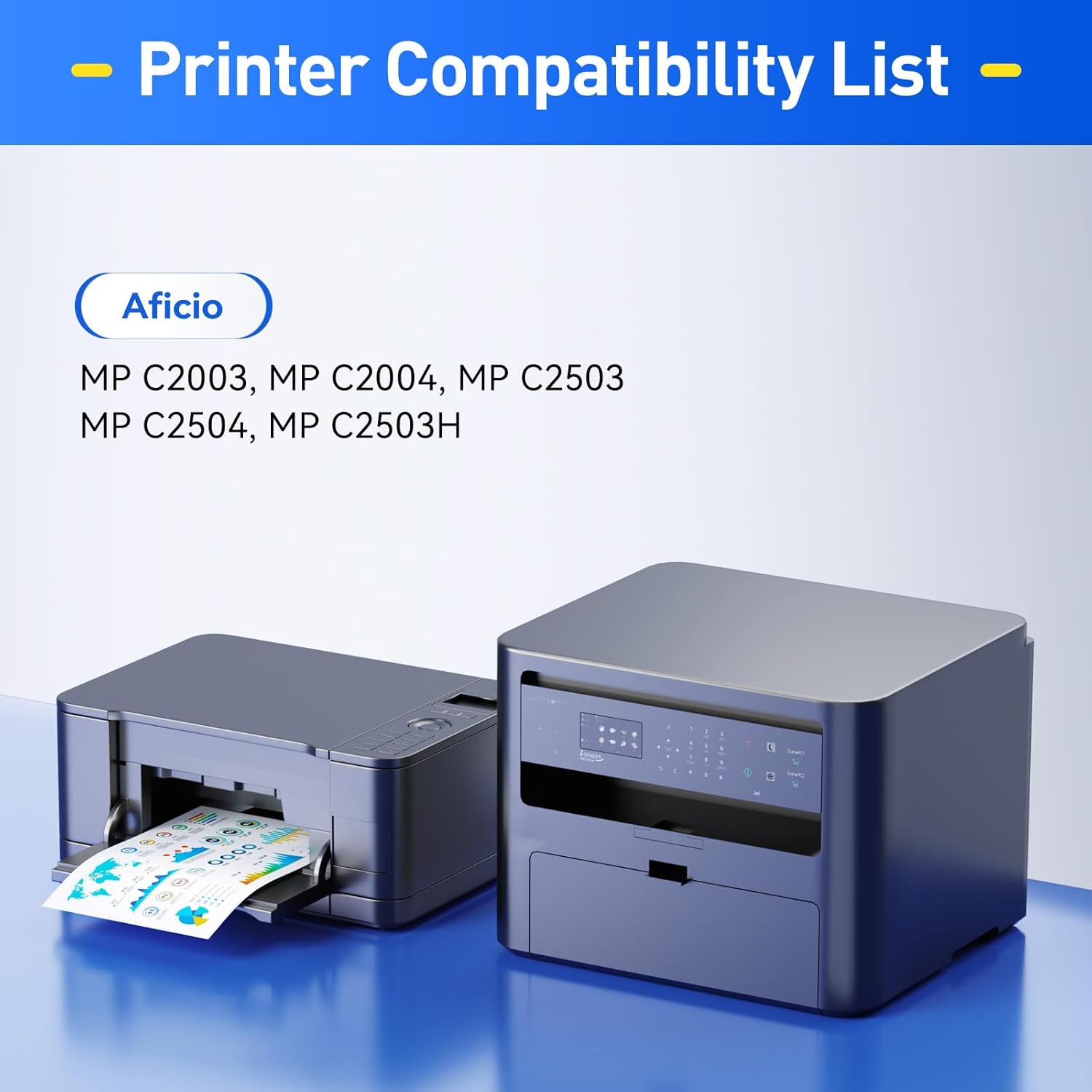 - Compatible Printers: Compatible with Ricoh Aficio MP C2003/MP C2503/MP C2004/MP C2004ex/MP C2504/MP C2504ex, Ricoh Lanier MP C2003/MP C2503/MP C2004/MP C2004ex/MP C2504/MP C2504ex, Ricoh Savin MP C2003/MP C2503/MP C2004/MP C2004ex/MP C2504/MP C2504ex, Ricoh MP C2011 MP Series Printer. Compatible Toner ModelοΌ841918,841921,841920,841919.