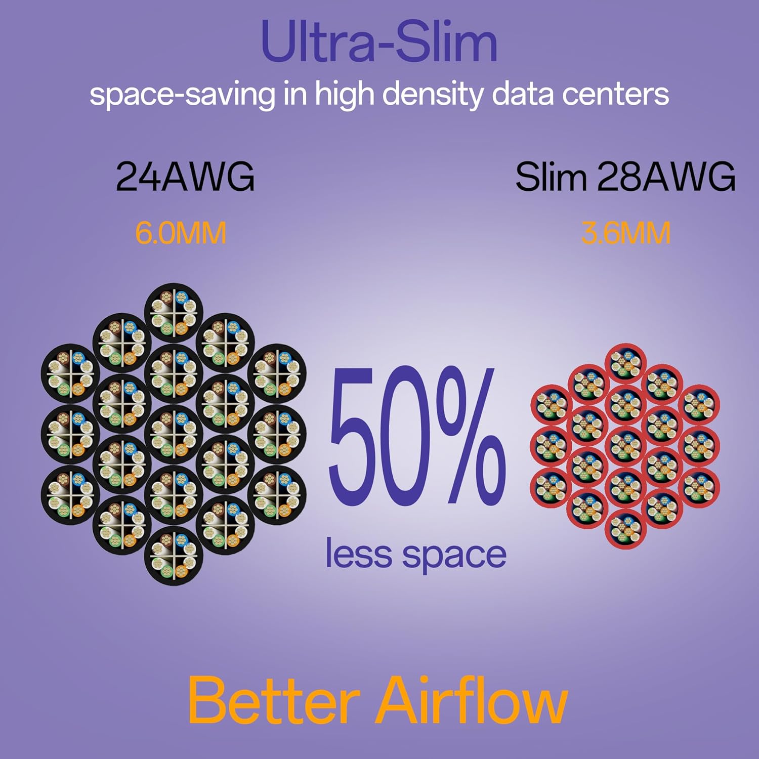 - Ultra-Slim: Slim CAT6 patch cord is 50% thinner than standard networking cables. Slim Cat6 UTP patch cable is designed for space-saving in high density environments such as data centers telecommunication and server rooms.