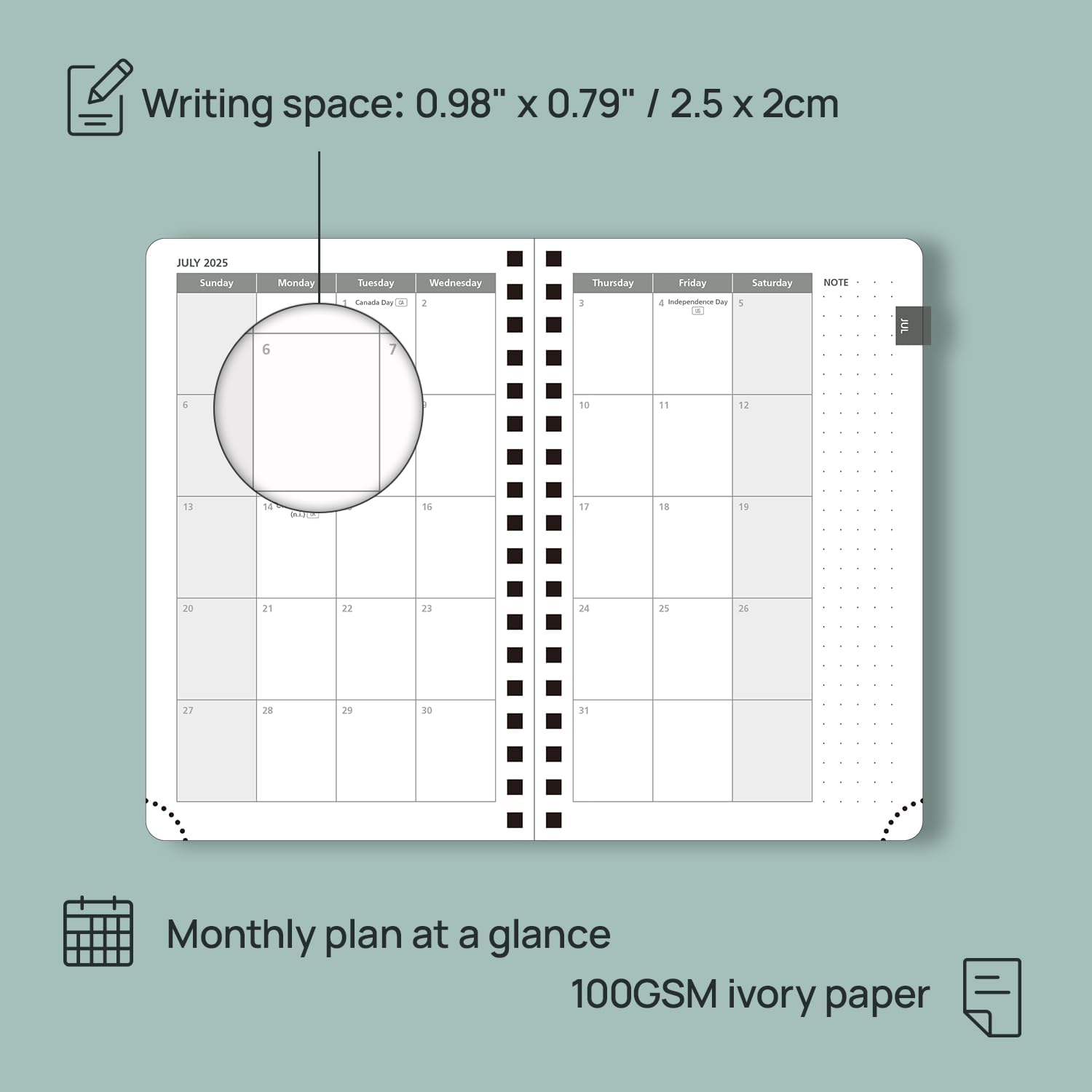 - EXTRA PAGES: This 2025 weekly planner also contains "2025-2026 Yearly Overview" Page + "2025-2026 Holiday & Calendar" Page + Contact Pages +Password Page + Dotted Notes Pages for jotting down your ideas, thoughts or any other happy things in detail.