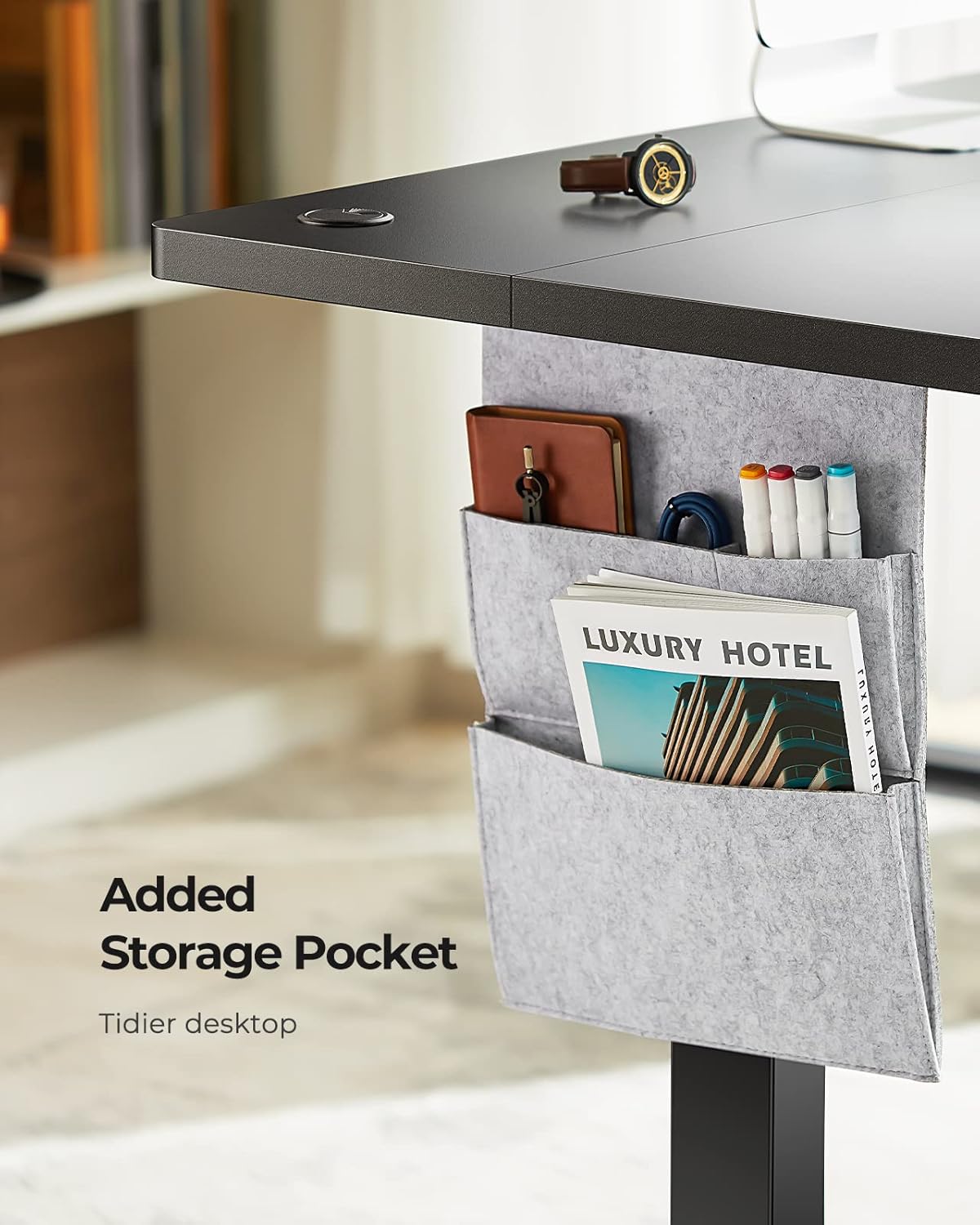 - Multifunctional Side Storage Pocket: The adjustable desk stay organized with Marsailβs double-layered side storage pocket, designed to hold folders, notebooks, and office supplies without taking up valuable desk space. This pocket keeps your essentials within easy reach, reducing clutter and boosting focus and productivity. Its seamless design integrates perfectly with the desk's aesthetic.