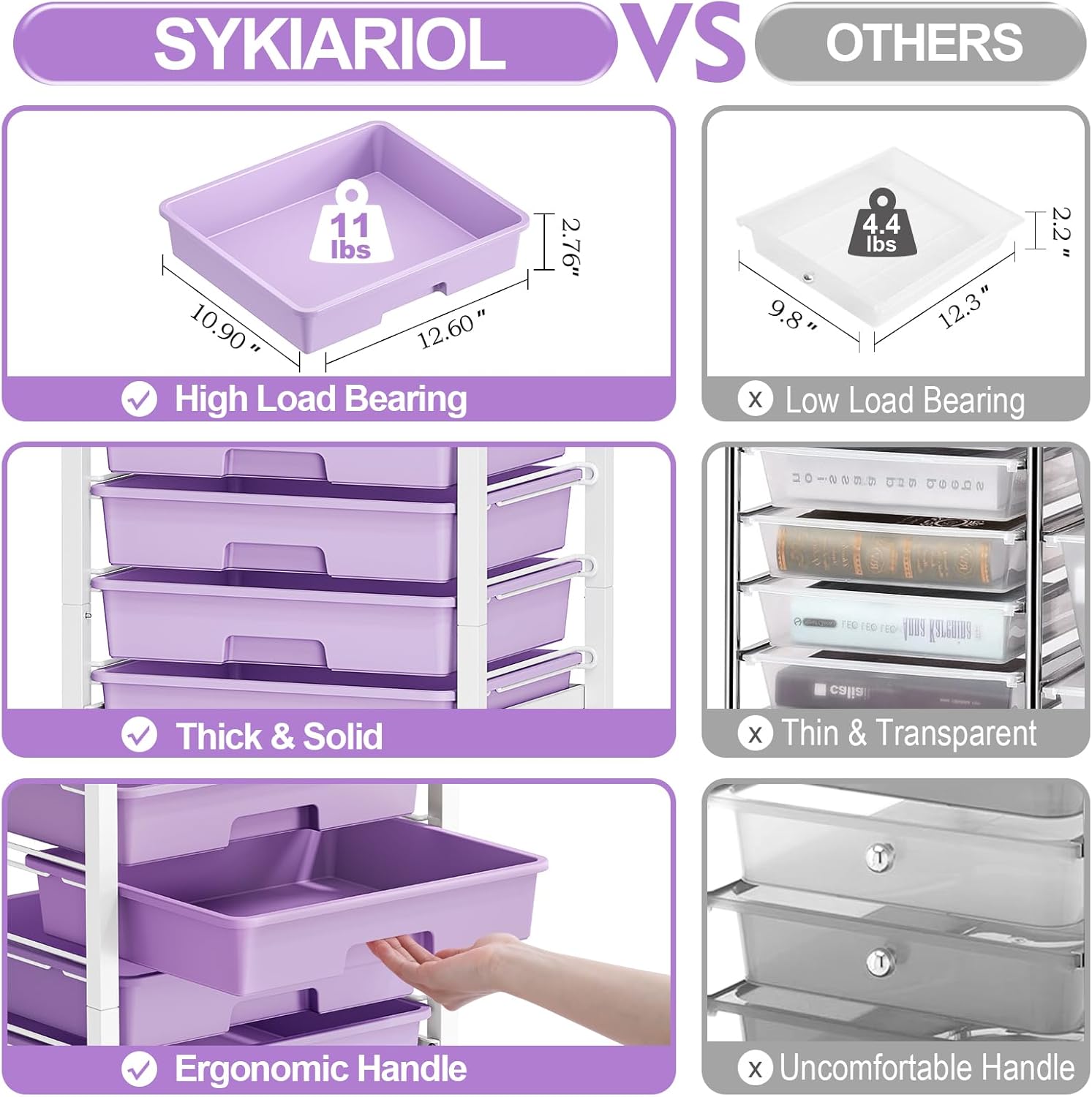 Rolling Cart with Drawers,10 Drawer Rolling Cart,Storage Cart with Wheels,Utility Cart with Drawers,Teacher Cart for Classroom Storage,Craft Cart with Wheels and Wooden Tabletop,Purple