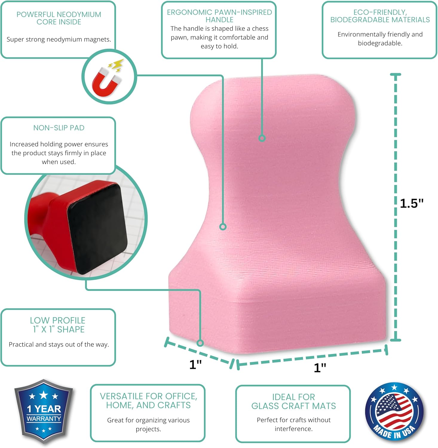 Glassboard Studio MiniPawn Magnet - Strong Neodymium Rare Earth Magnets for Fridge, Whiteboard, Locker & Magnetic Glassboards - Ideal for Crafting & Office Use - Strong Fridge Magnets (Blush Pink, 2)