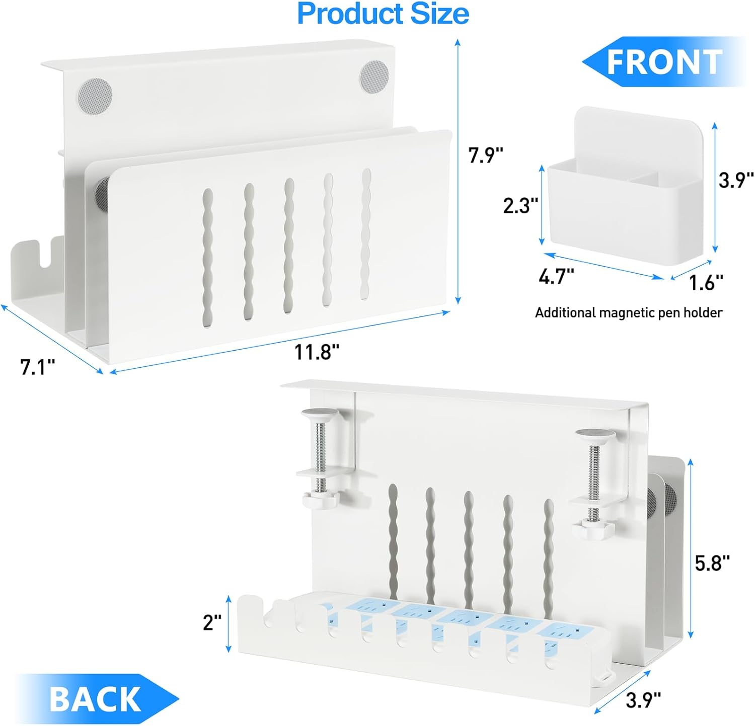 - γMultifunctional Storage with Cable Tray & Pen HoldersγThis desk accessory with extra storage space for power strip is equipped with pen holders and designed to hold a laptop, Mac Mini, tablet, power strip, hidden wires, headphone, interior accessories, manuals, files, documents, notebooks, and other office supplies.