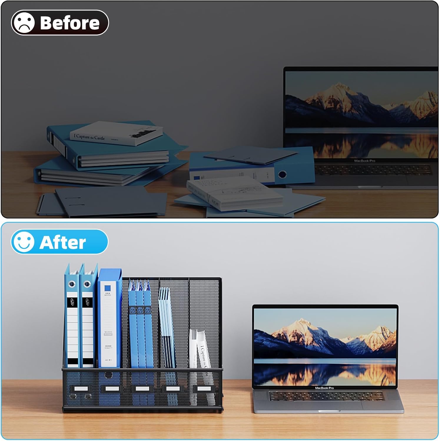 - 【High-Quality Material】The mesh desktop file organizer is made of lightweight and durable metal mesh, reinforced with a solid steel frame, rust-proof and extremely durable for long-lasting strength.