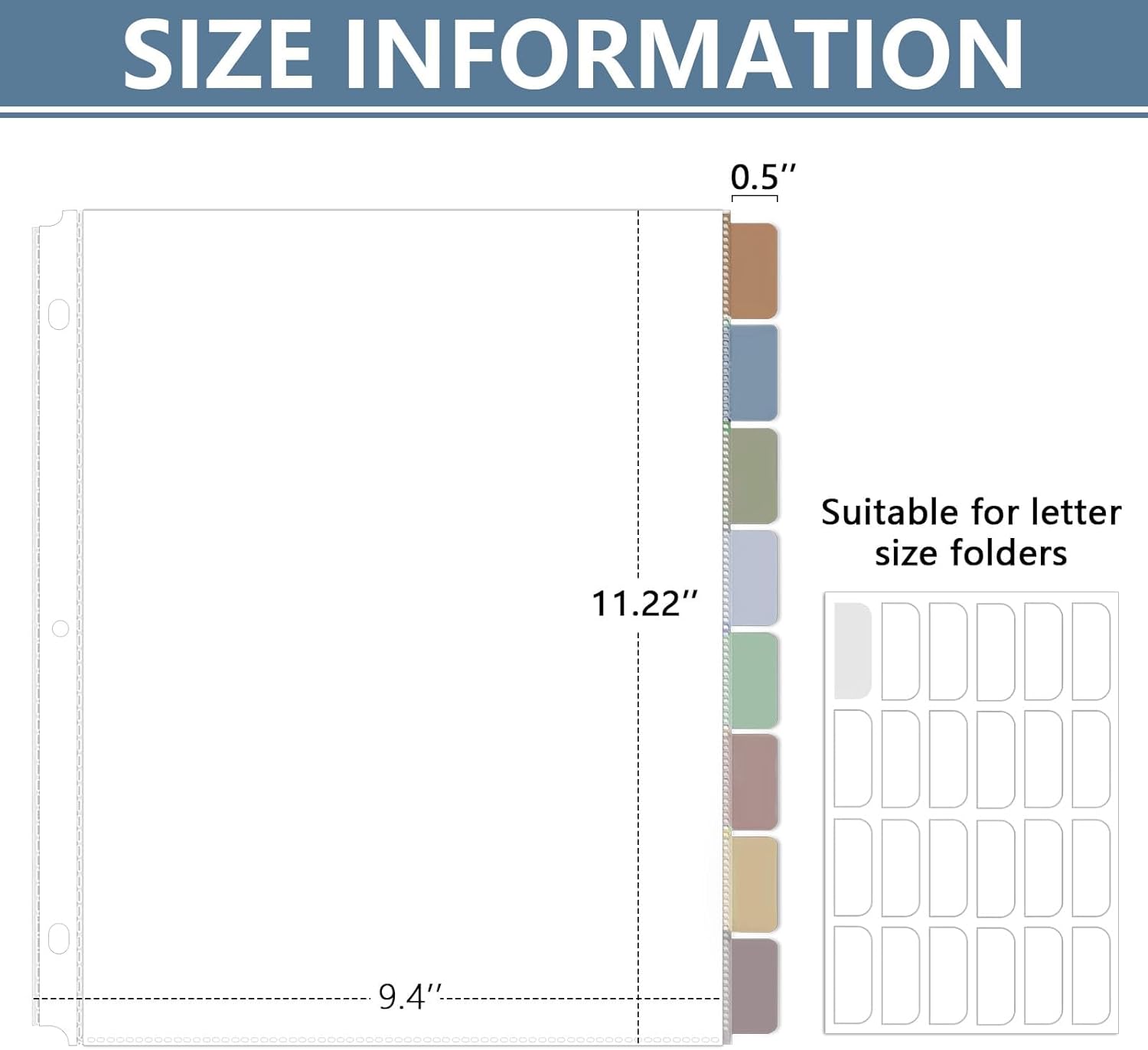 - Binder Dividers Size: Measuring approximately 11.22 x 9.4 inches (28.5 x 32.88 cm), each page divider is specifically designed to accommodate standard 8.5 x 11 inch letter-sized paper. This size is compatible with most 3 ring binders, allowing seamless integration into your existing organization system. Ideal for organizing reports, manuals, school assignments, and more.