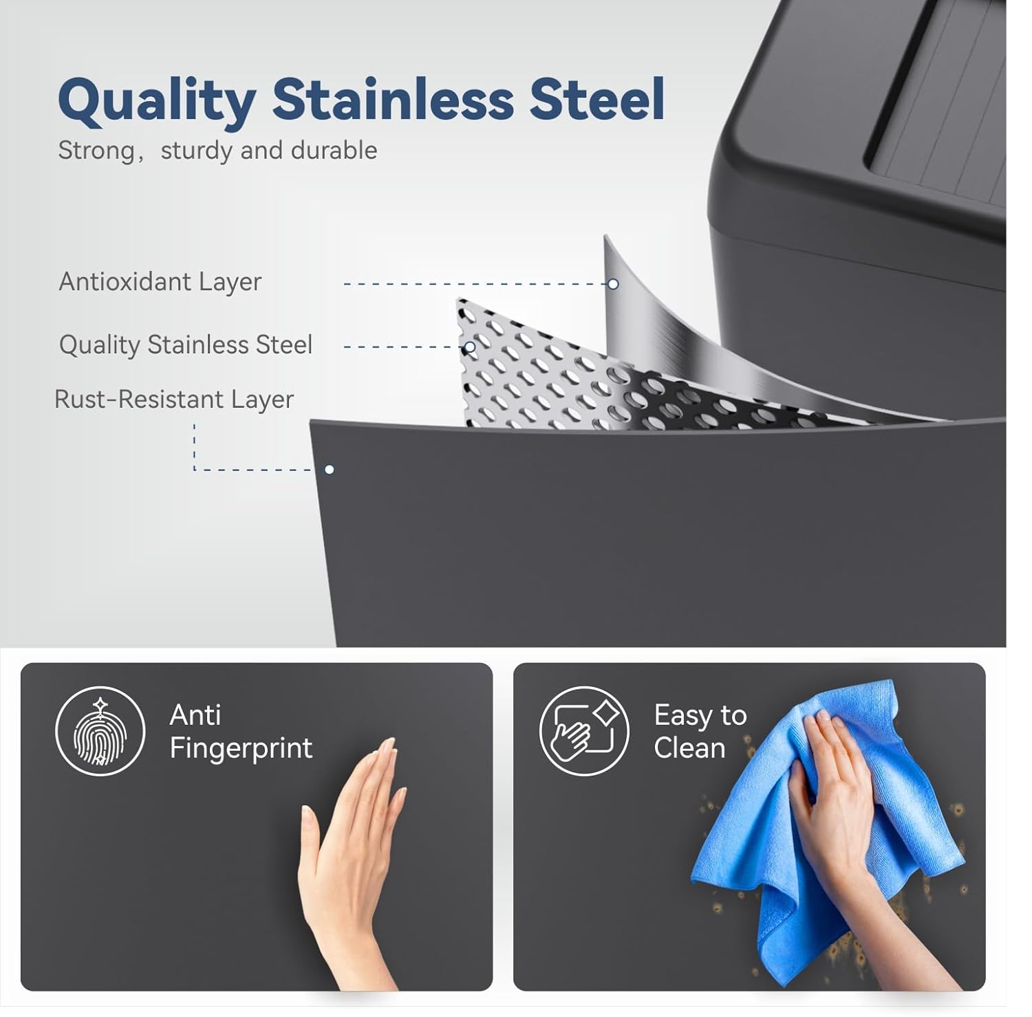 - γDurable Stainless Steel ConstructionγοΌCrafted from high-quality stainless steel, this 13-gallon trash can is built to last. The robust material ensures long-lasting use and adds a modern touch to your kitchen. The stainless steel surface of the garbage can is easy to wipe clean, making maintenance a breeze.