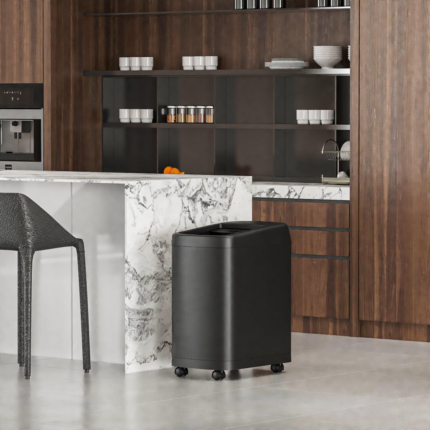 - γSleek Roll-Top Lid Designγ οΌThe roll-top lid design not only keeps the trash hidden but also prevents unpleasant odors from escaping. The smooth opening and closing mechanism effortlessly seals in the odor, keeping your kitchen smelling fresh.