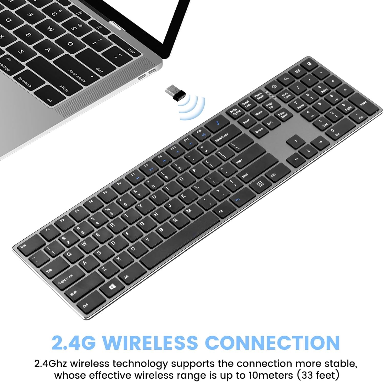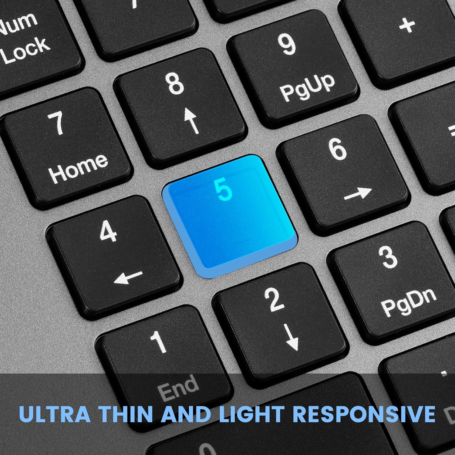 - 【Full-Size Ergonomic Keyboard 】Wireless keyboard is compact and light weight, but provides full-size keys, arrow keys, number pad, 12 multimedia shortcuts greatly simplify your work and more focus on the task at hand, making it a great choice for most offices.